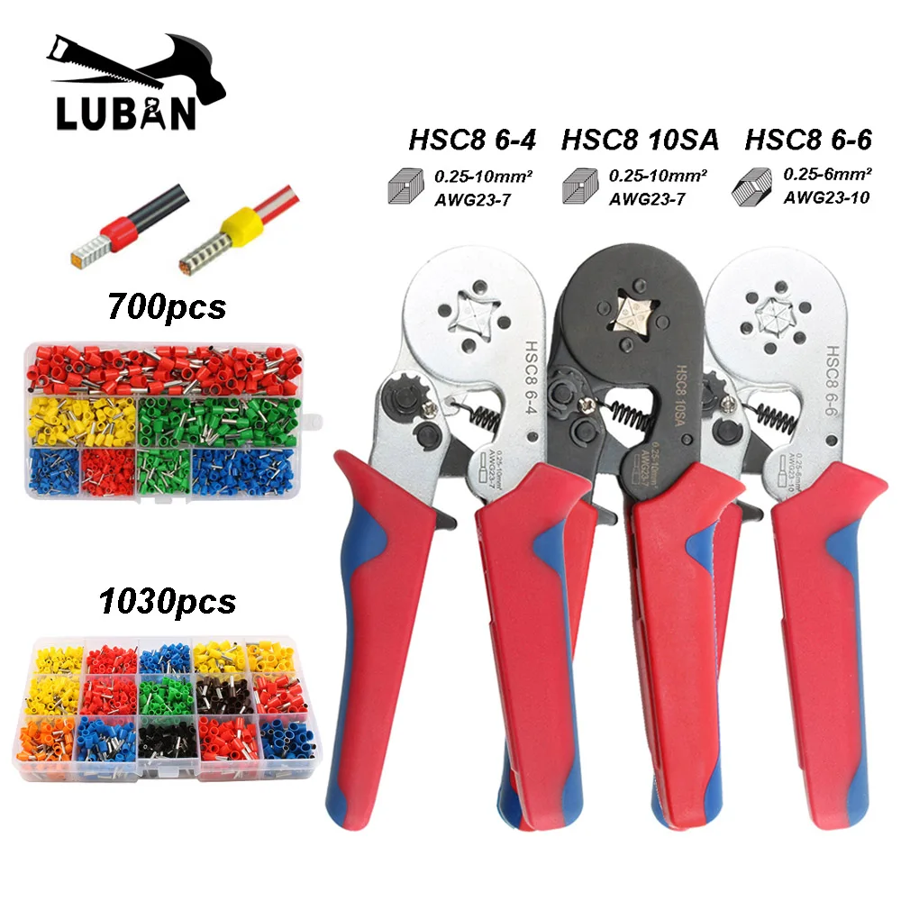 Инструменты для обжима, трубчатые мини-плоскогубцы HSC8 10SA6-4 0,25-10 мм2 23-7AWG 6-6A 0,25-6 мм2 набор высокоточных зажимов