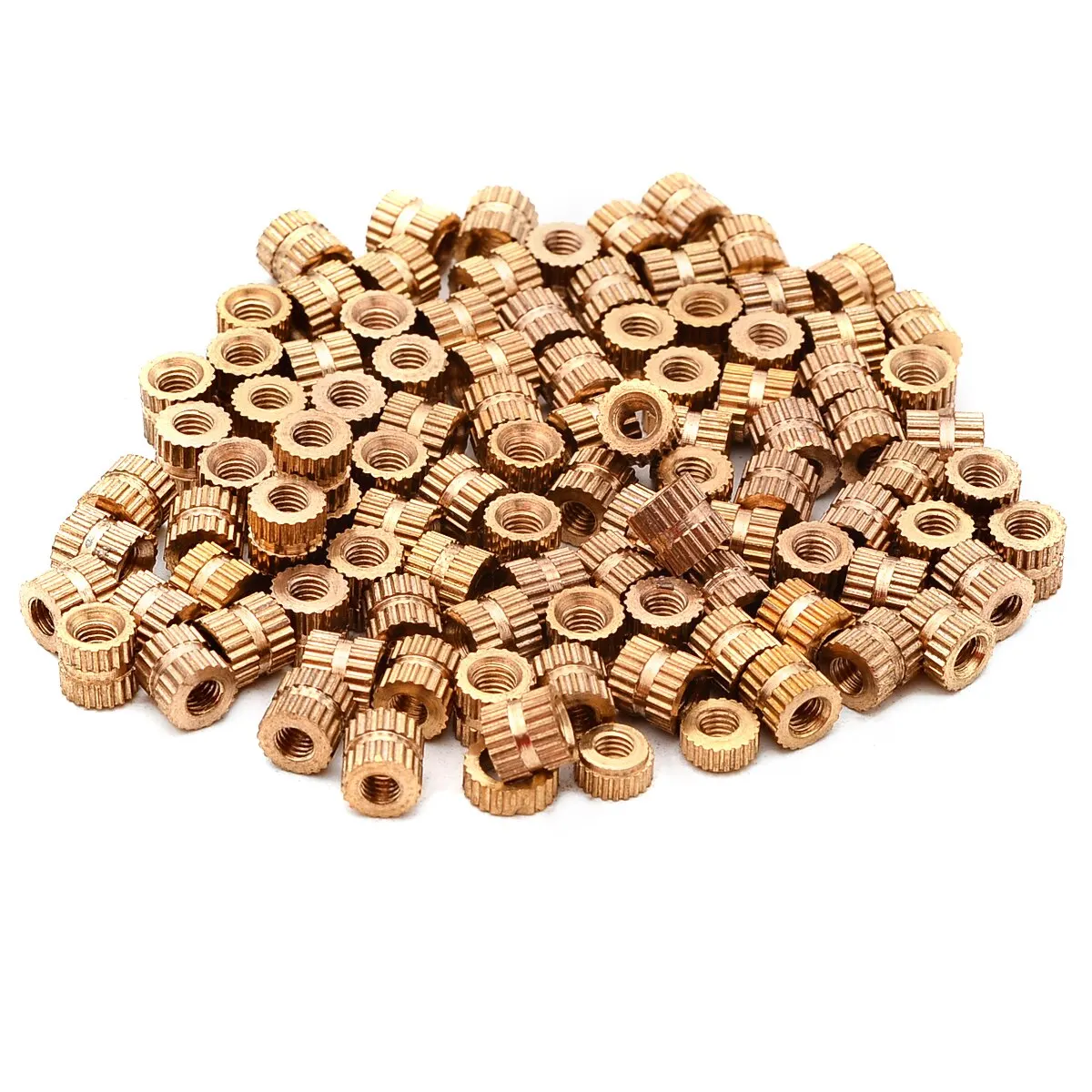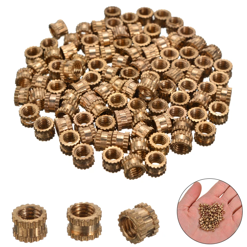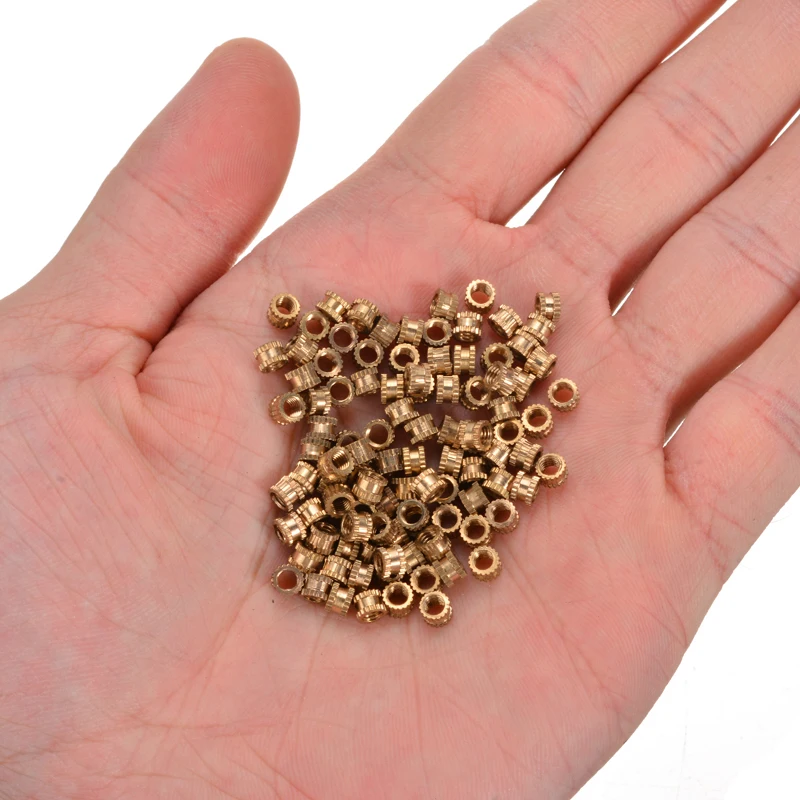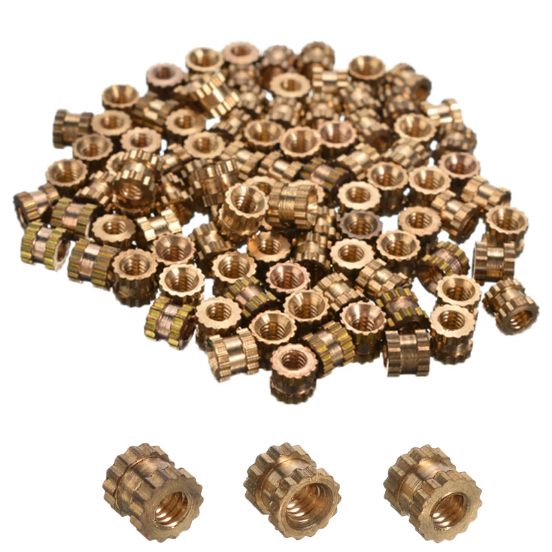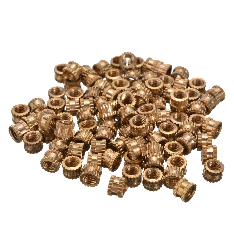 100 шт. 4,2 мм Диаметр круглые металлические гайки с накаткой для резьбы M3 * 3 мм резьба латунный тон