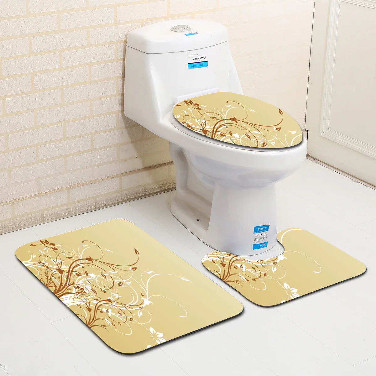 3 шт.компл., Нескользящие коврики Zeegle с цветочным принтом для туалета, ванной комнаты, фланелевые коврики, впитывающий ковер для ванной