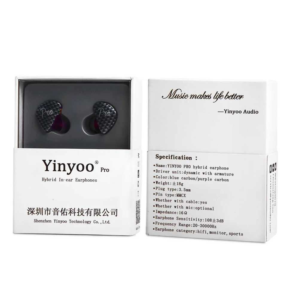 Новинка 2018, гибридные наушники-вкладыши Yinyoo Pro BA + DD, сбалансированная арматура с динамическим шумоподавлением, гарнитура с микрофоном и кабелем MMCX