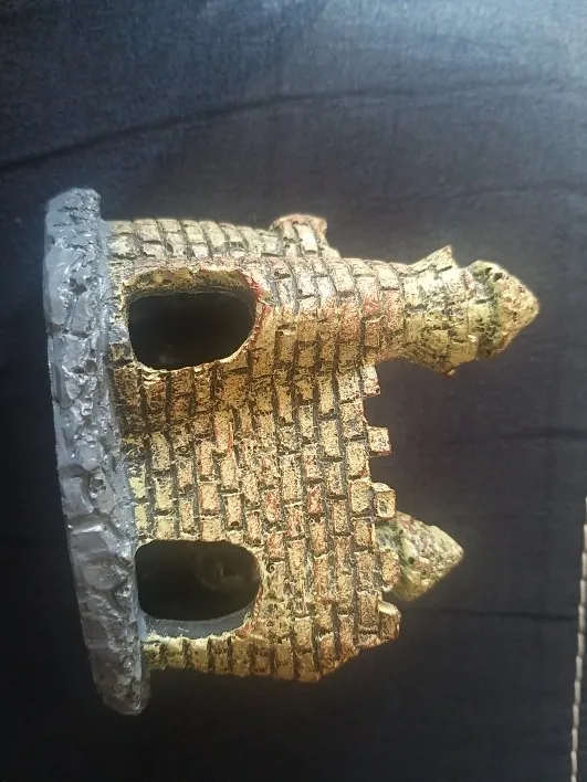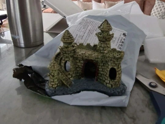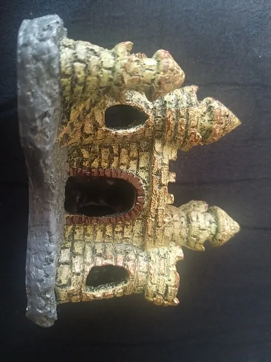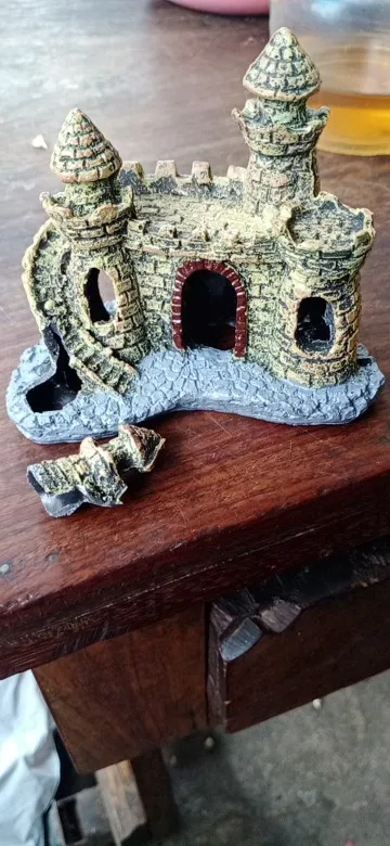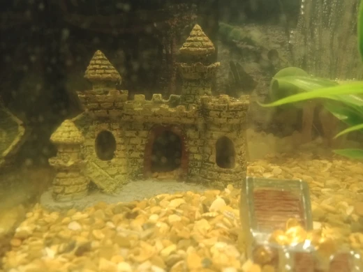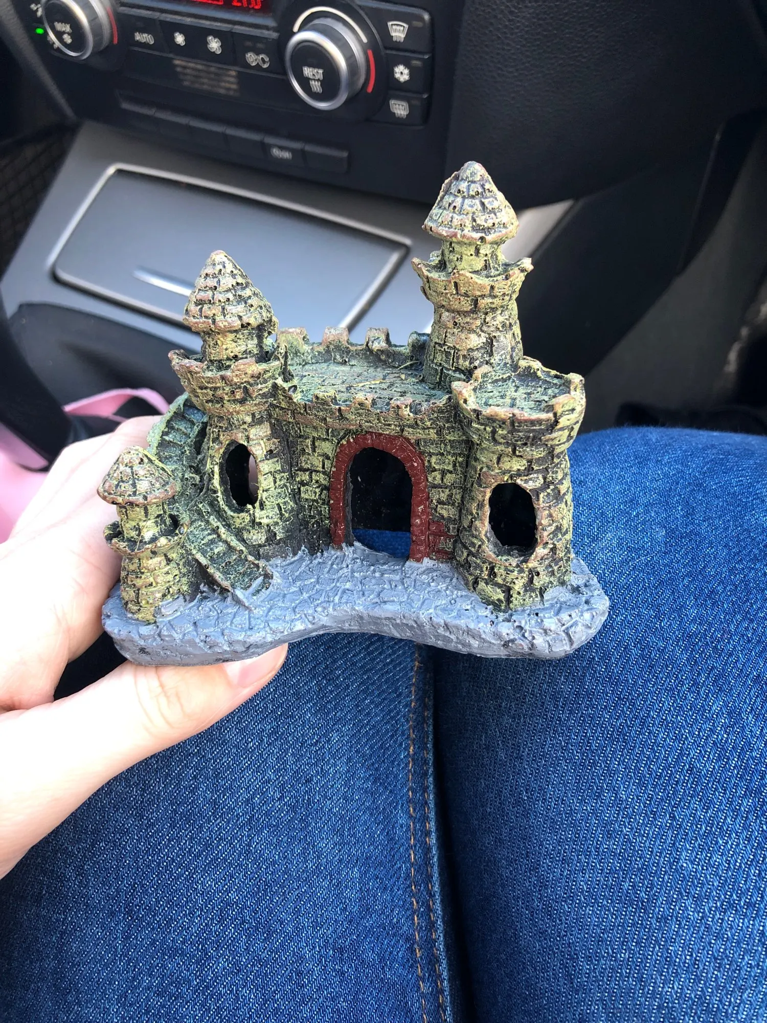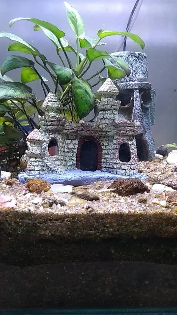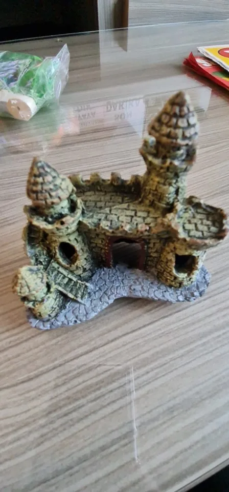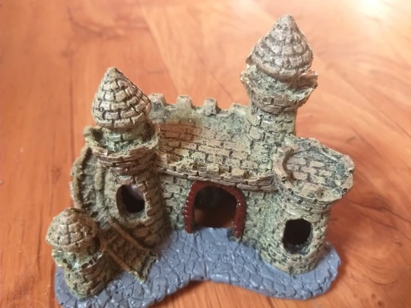 классный замок, небольшой, но у меня аквариум всего 30 литров, поставила в угол, между ним и задней стенкой оставила небольшое расстояние. теперь там прячутся рыбки, им нравится. смотрится замок неплохо.