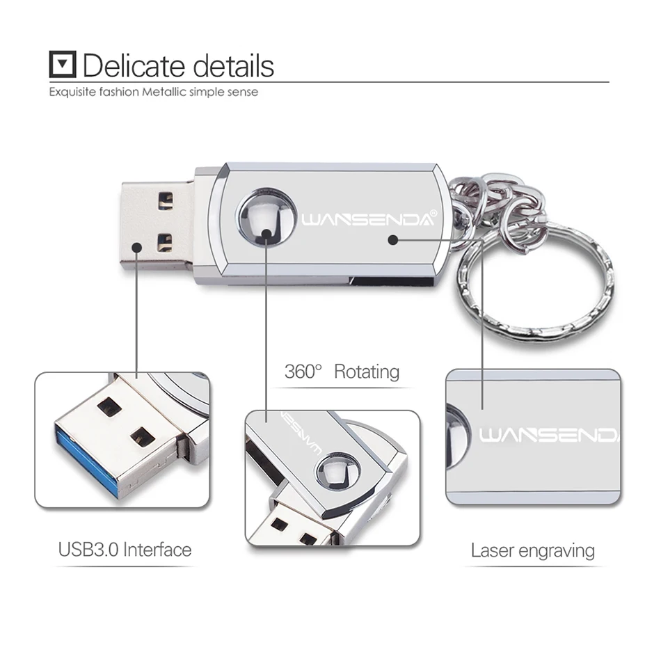 Wansenda USB 3,0 USB флеш-накопитель из нержавеющей стали с цепочкой для ключей, 256 ГБ 128 Гб 64 ГБ 32 ГБ 16 ГБ, usb-флешка, карта памяти