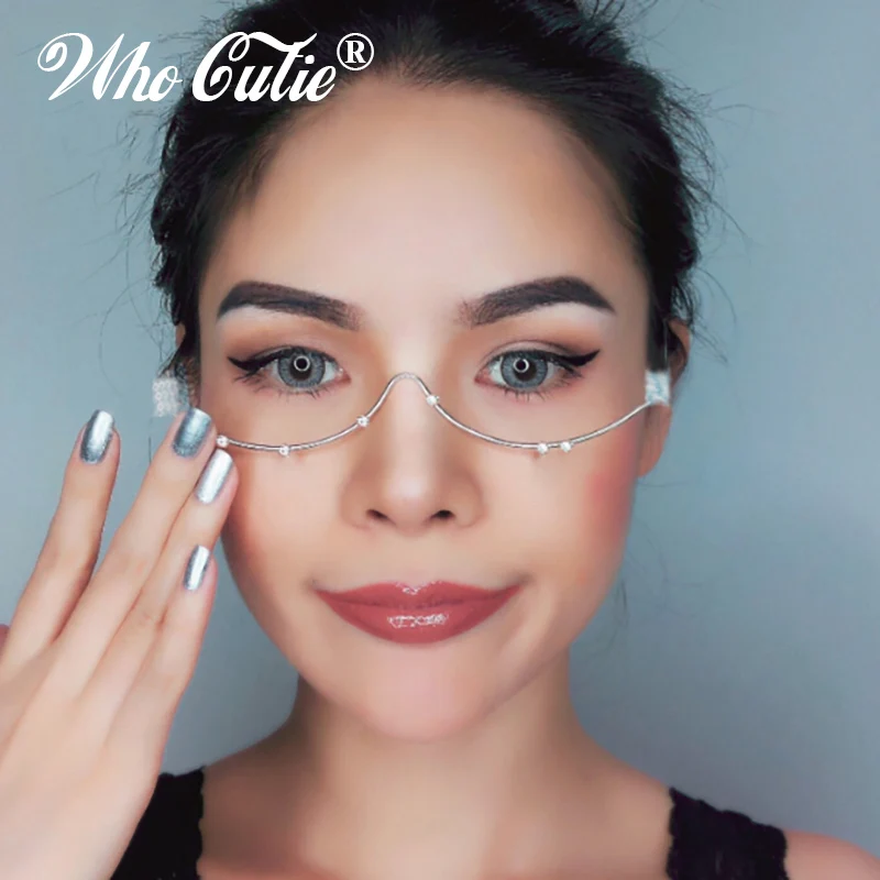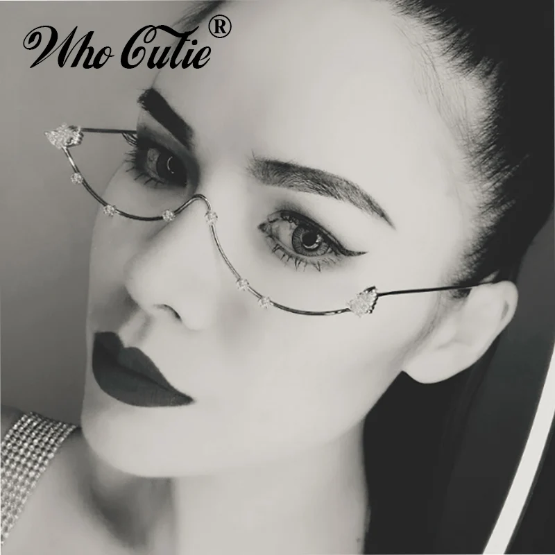 WHO CUTIE 2018 Уникальная без линз половина оправа для очков Женская проволока кошачий глаз Брендовое дизайнерское украшение со стразами-кристаллами OM546