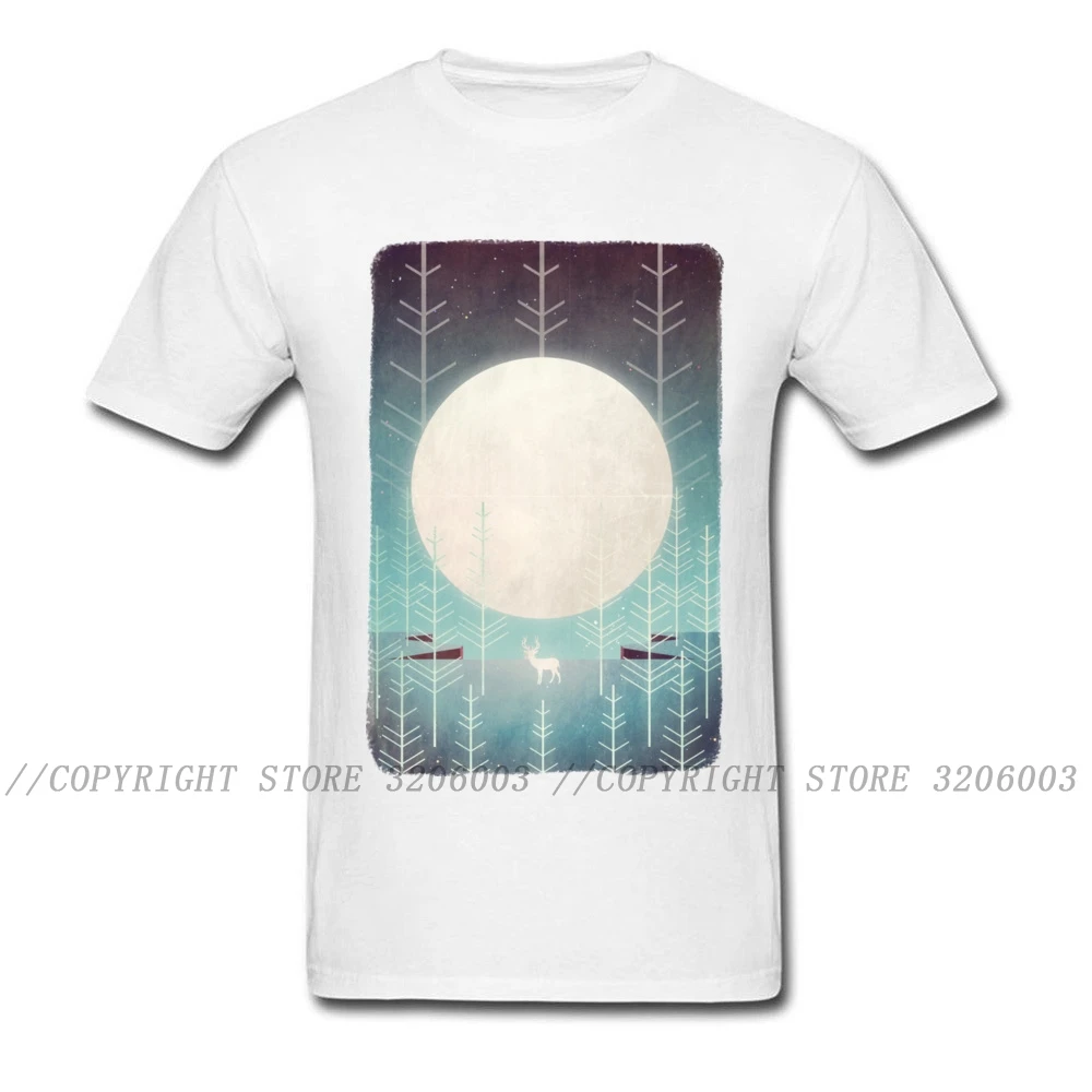 Название продукта: новый дизайн, тихая луна, ночь, олень, лес, прогулочная футболка, черные топы, мужские футболки с коротким рукавом, Мультяшные рубашки размера плюс