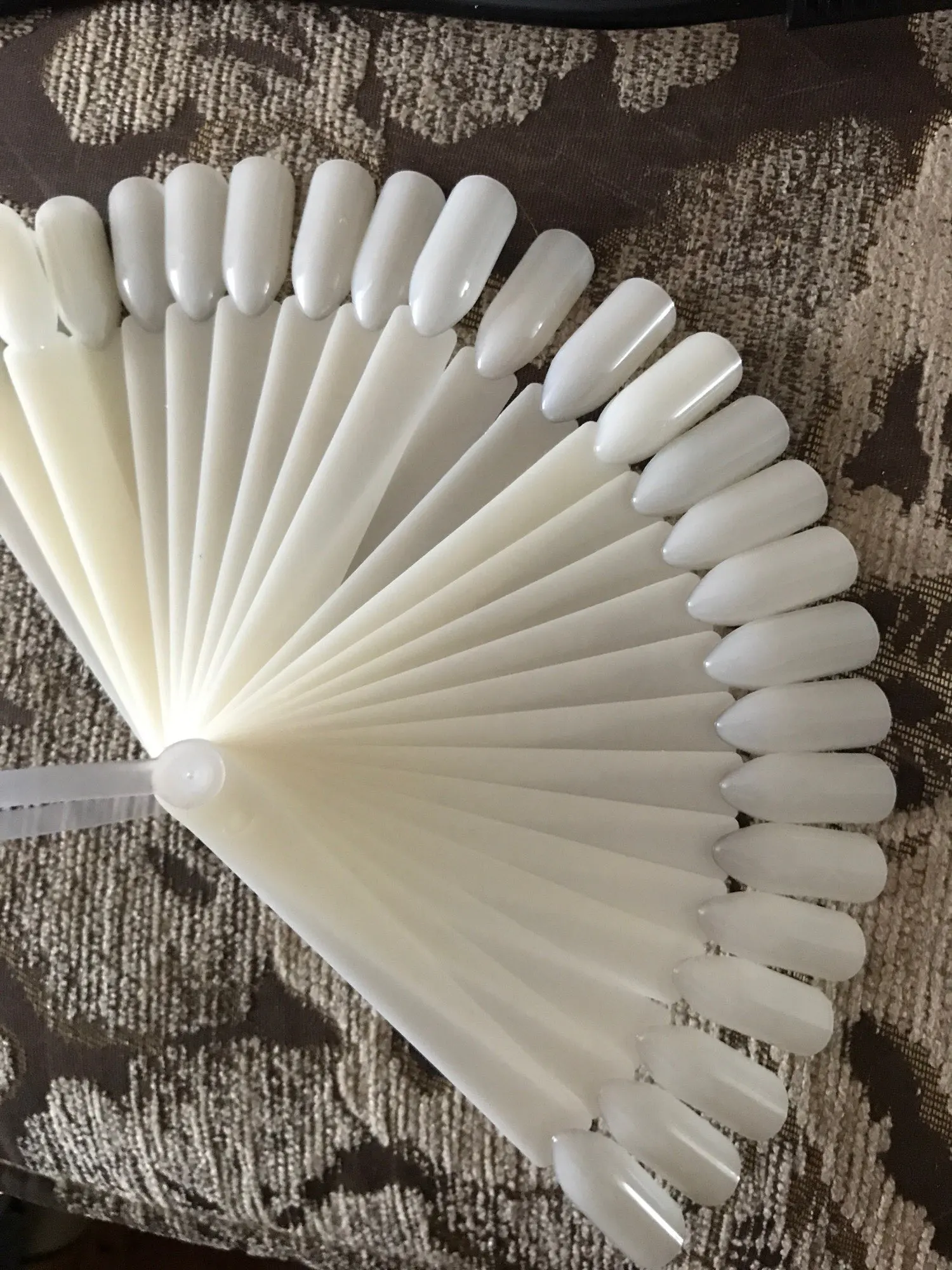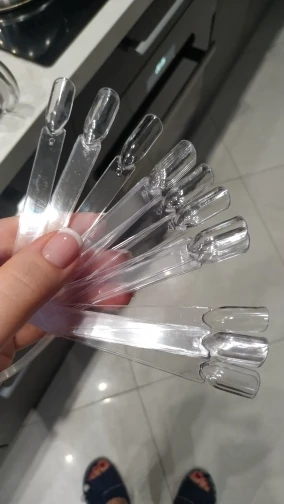 Типсы хорошие, хлипенькие, маленькие, в размер с ладошку, примерно 10-11 см. В общем, товар пришел, хоть это радует, судя по отзывам у некоторых товар не пришел. Продавец не мошенник. Была скидка от продавца -0.20$ очень даже кстати. Заказывала 32 штуки. Заказывала 23.11.2020 пришли 05.01.2021. На некоторых фото типс меньше, т.к. пустые повынимала.