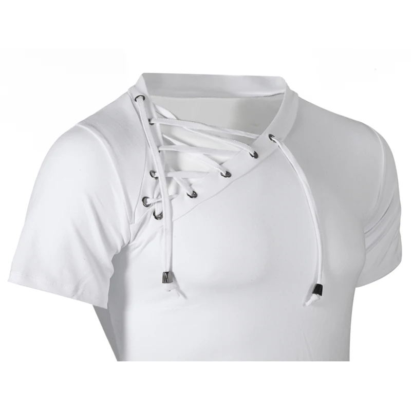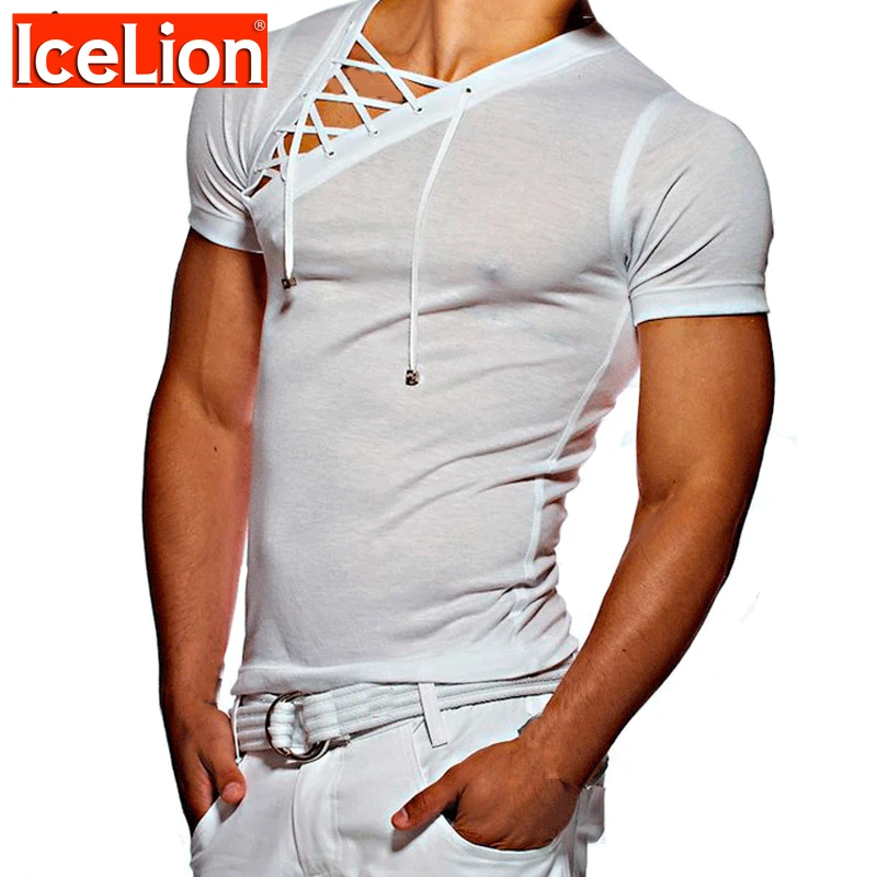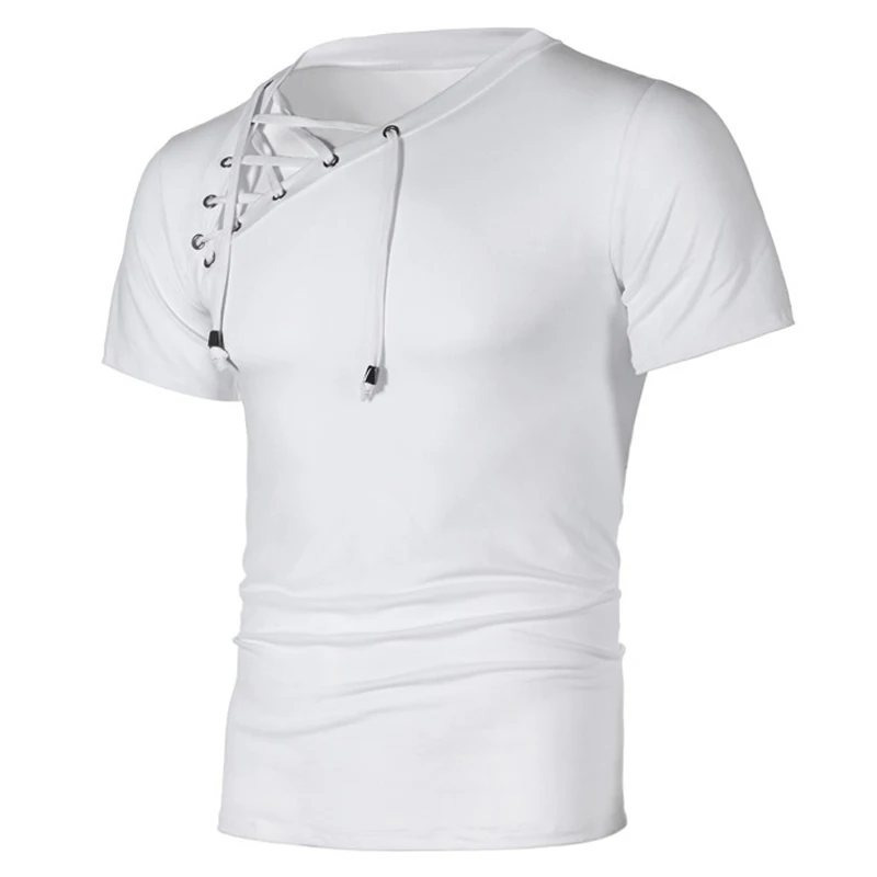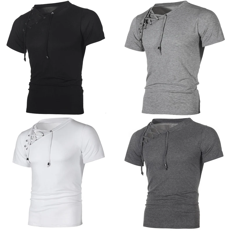 Футболка мужская с завязкой, тонкая тенниска с коротким рукавом для фитнеса, модная повседневная однотонная приталенная, лето 2021