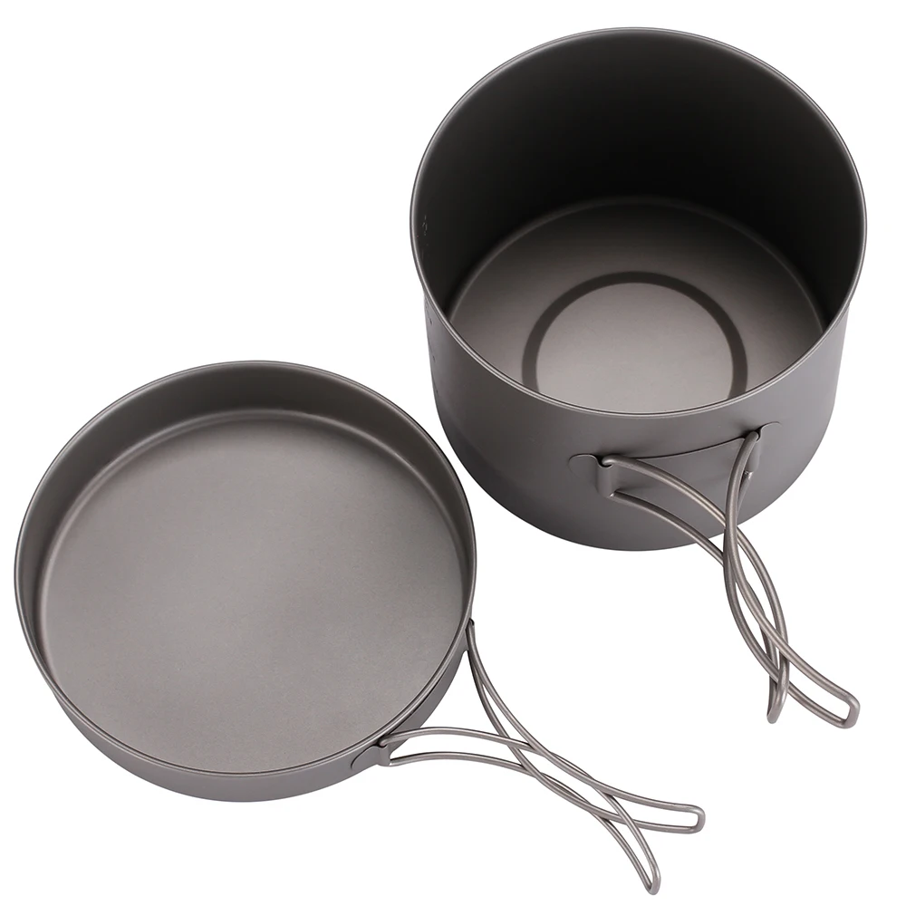 Сверхлегкий титановый набор TOAKS, набор посуды со складной ручкой для кемпинга, 1300 мл