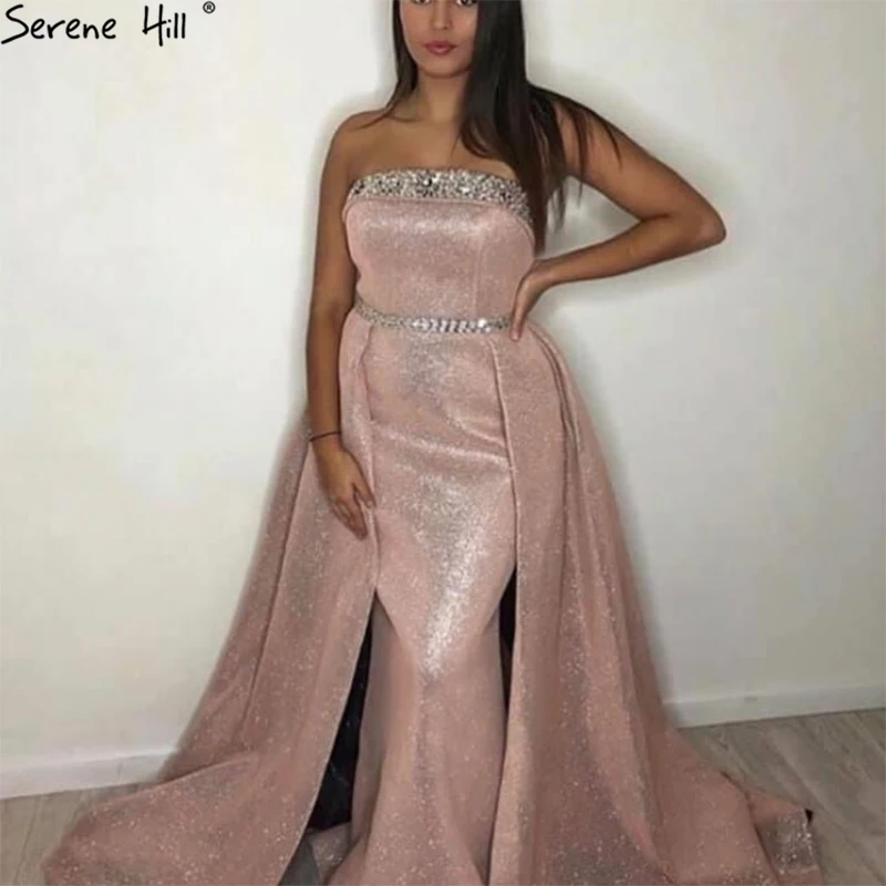 Дубай Дизайнер Розовый бисер Роскошные тонкие сексуальные Русалка Вечерние платья винтажные Элитные вечерние платья настоящая фотография LA6339 2021