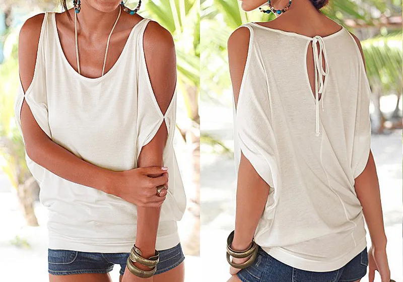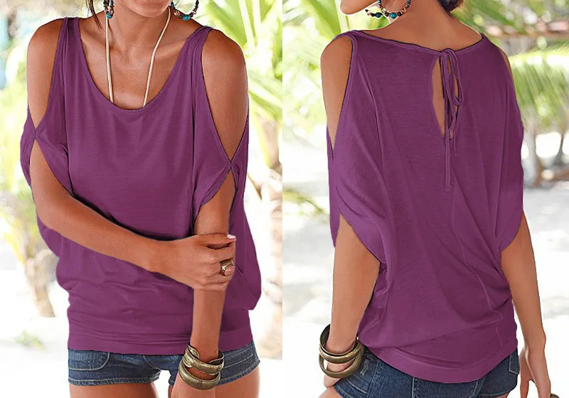 Женская футболка с открытыми плечами, свободная повседневная футболка с вырезами, модель EFF6125, 2020