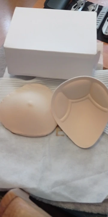 Посылка пришла быстро. Упакована хорошо. Продавец помогает определить размер. Протез в футляре по размеру, сторона к телу хлопковая, внешняя- шелковистая. Цвет футляра телесный. Плюс подложка в бюстгальтер чуть толще чем обычных топах.