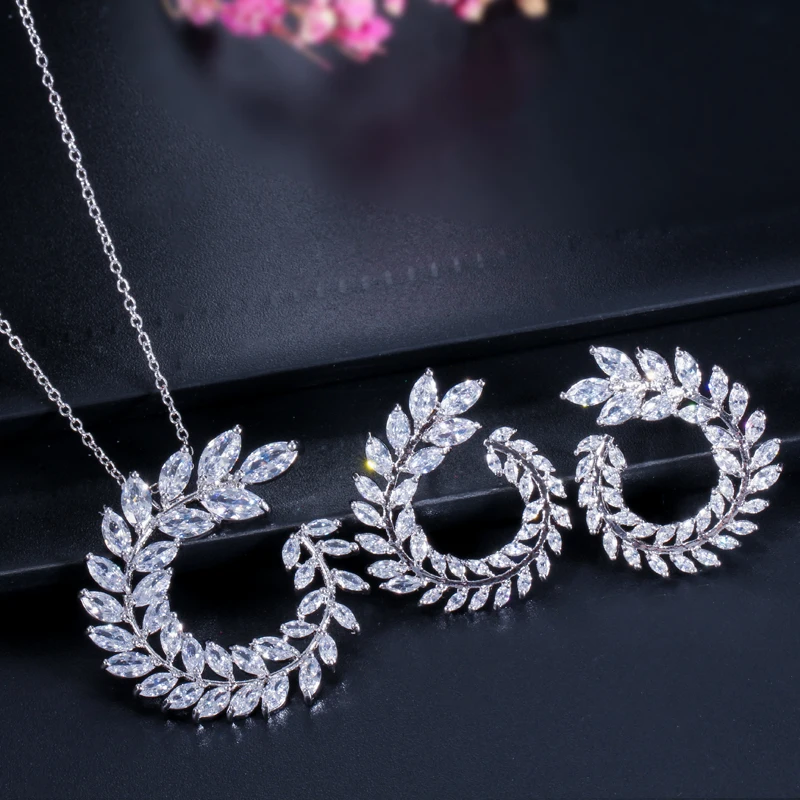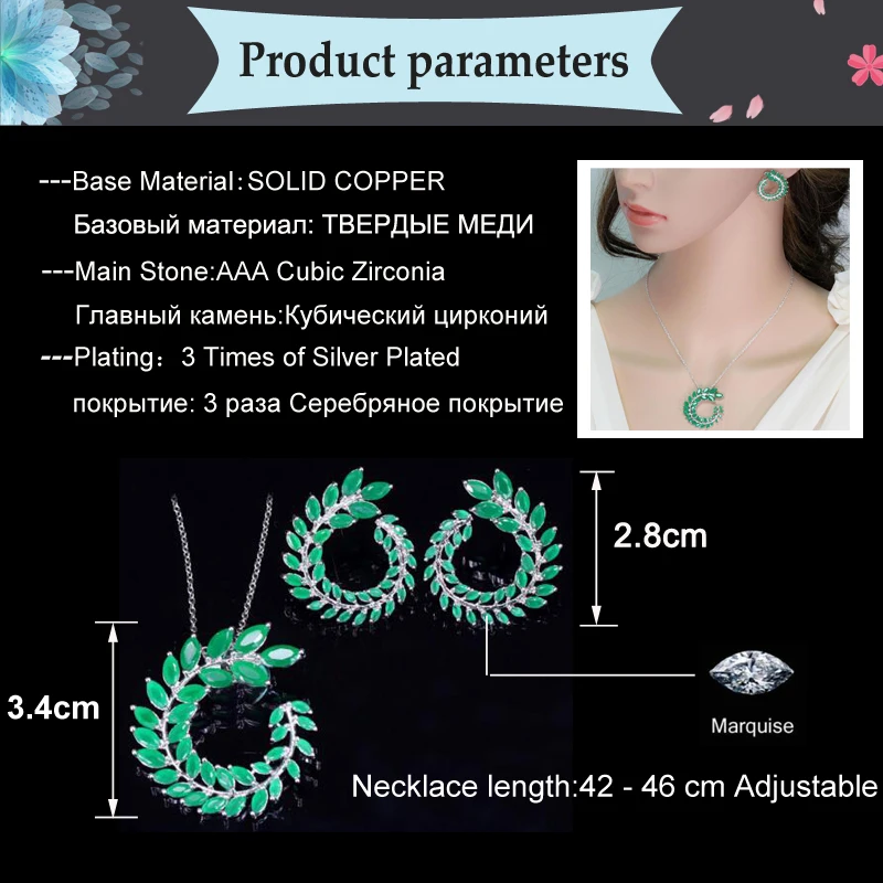 Название позиции: BeaQueen новые модные серьги-гвоздики с зеленым листом, ожерелье с подвеской, CZ камень, вечерние Ювелирные наборы, лучший друг, подарок для женщин JS097