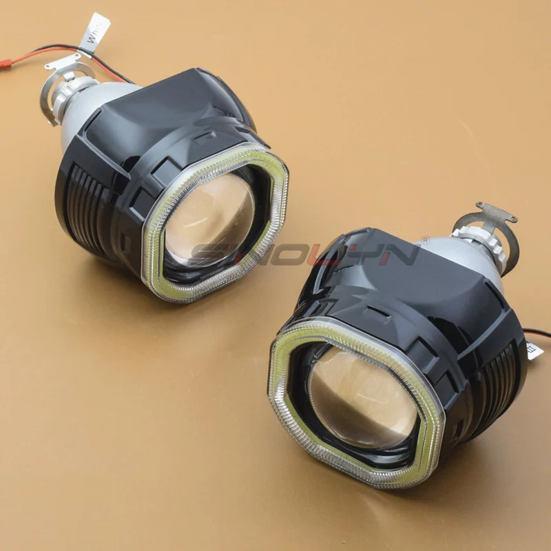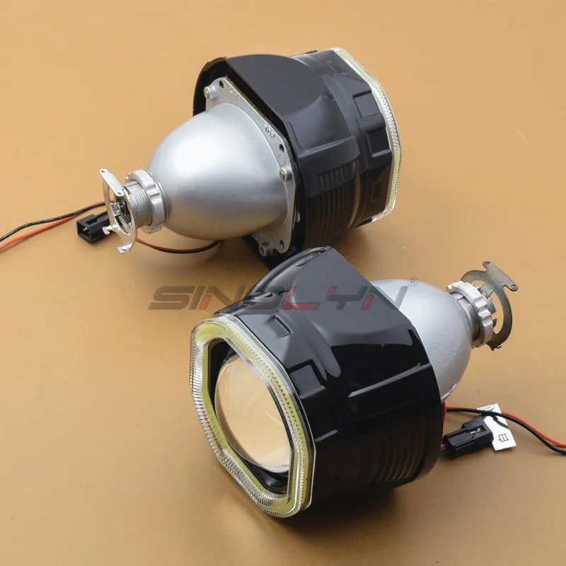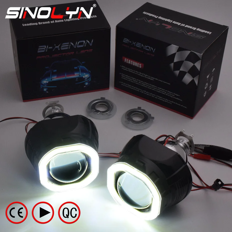 Биксеноновые светодиодсветодиодный линзы ангельские глазки Sinolyn для Фар H4 H7, Черный кожух, комплект линз 2,5 дюйма для автомобильных фар, аксессуары