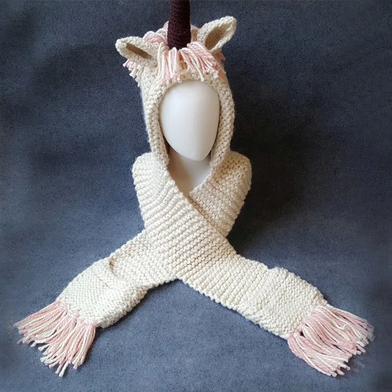 Зимний вязаный комплект из шапки и шарфа с капюшоном для девочек и мальчиков