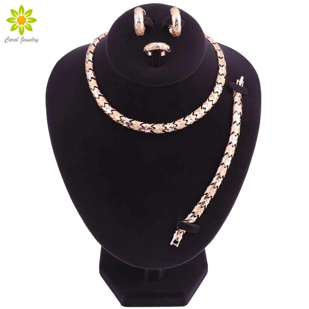 Набор ювелирных украшений золотого цвета для женщин, Свадебный комплект ювелирных изделий из африканских бусин в Дубае, ожерелье, серьги, браслет, кольцо, ювелирные изделия