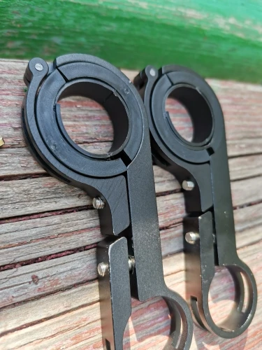 Качество на вид очень даже неплохое. Покупал для того чтобы поставить фару у которой вертикальное крепление не подходящее для горизонтальной установки на шток руля. Товаром доволен.