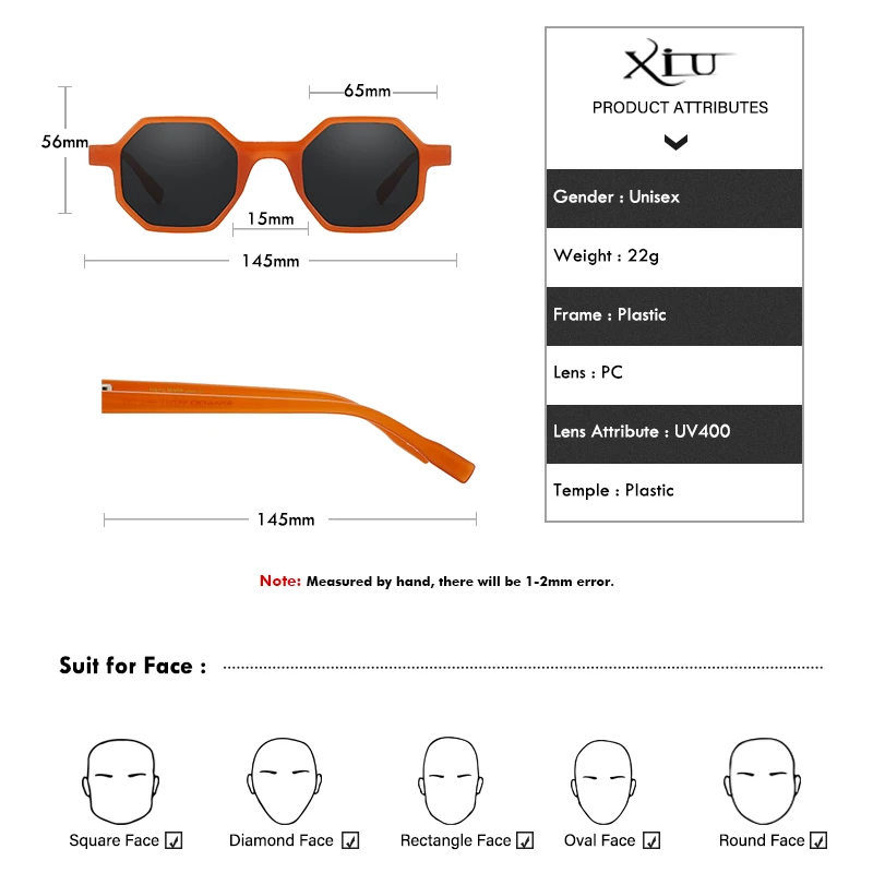 Модные прямоугольные солнцезащитные очки XIU для женщин и мужчин, м...