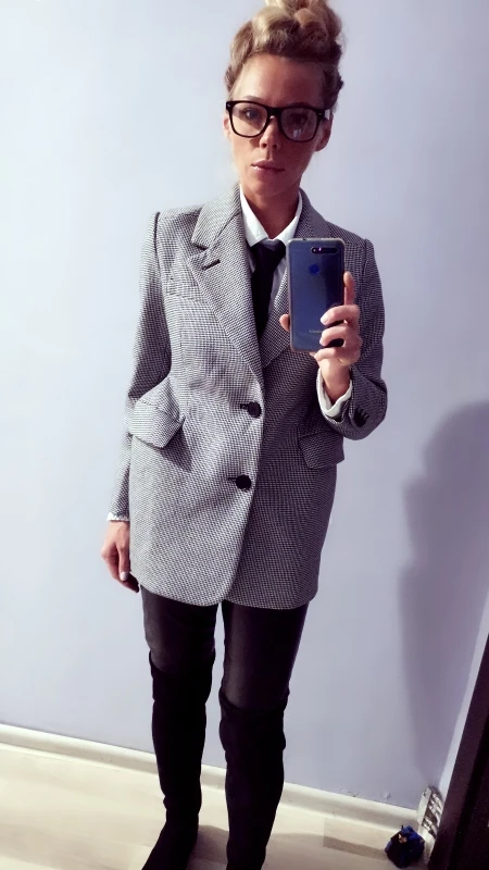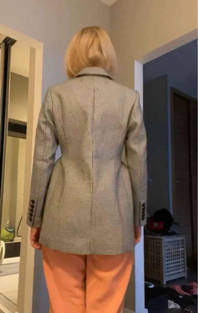 Начнём с того, что у пиджака совершенно неправильная посадка. Они как всегда, скопировали модель неправильно! Слишком широкие борты, обычно такие используются для «двубортных моделей», на девушке со средней/стройной фигурой он сидит очень плохо! Чтобы он сидел нормально, нужно: 1) перешить пуговицы, и добавить второй «обманный» ряд ( для симметрии ) а так же ещё по 2 пуговицы на выточки на груди. 2) подогнать сзади, иначе он «стоит колом», благодаря подгонке он и по плечам сядет лучше. Но задайте себе вопрос, есть ли у Вас лишние деньги, хорошая швея, время, и тд. Заниматься всем этим? По подсчетам это минимум 1500. Так же нужно докупать пуговицы... такая себе история. Продавец отправлял заказ около недели, и отказал в возврате части средств. :( После переделки дополню отзыв.