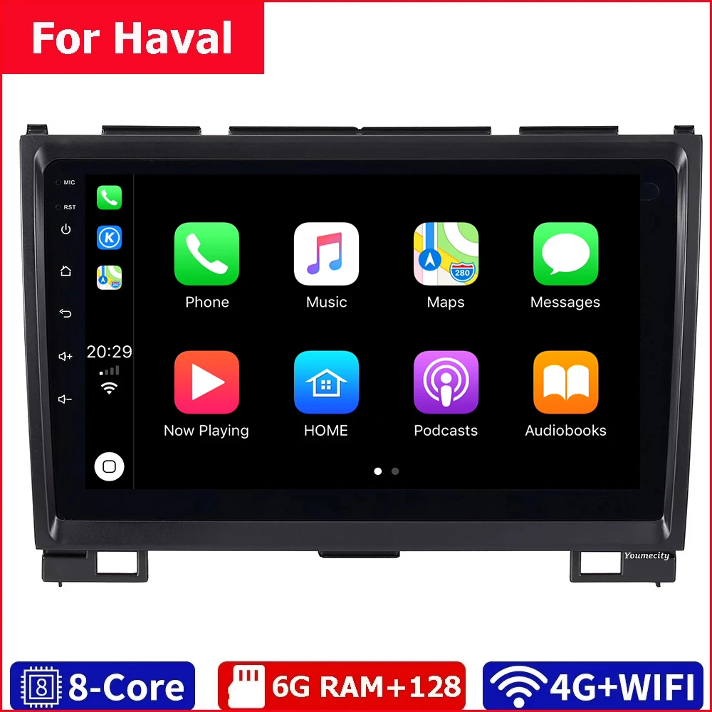 Автомобильный мультимедийный плеер, головное устройство Android 10,0 магнитола для Greatwall Great Wall Hover H3 H5 с радио Gps 2Din Carplay Авто Wifi + 4G сеть+Восьмиядерный процессор+яндекс+navitel+Верхняя 8 ГБ RAM
