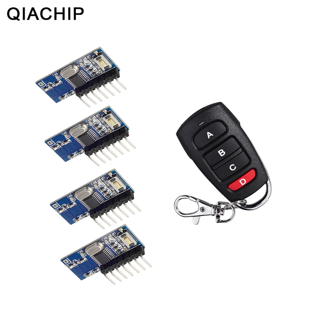 QIACHIP РФ дистанционного Управление передатчик и 433 МГц Беспроводной приемник обучение код 1527 модуль декодирования 4 CH Выход кнопку обучения