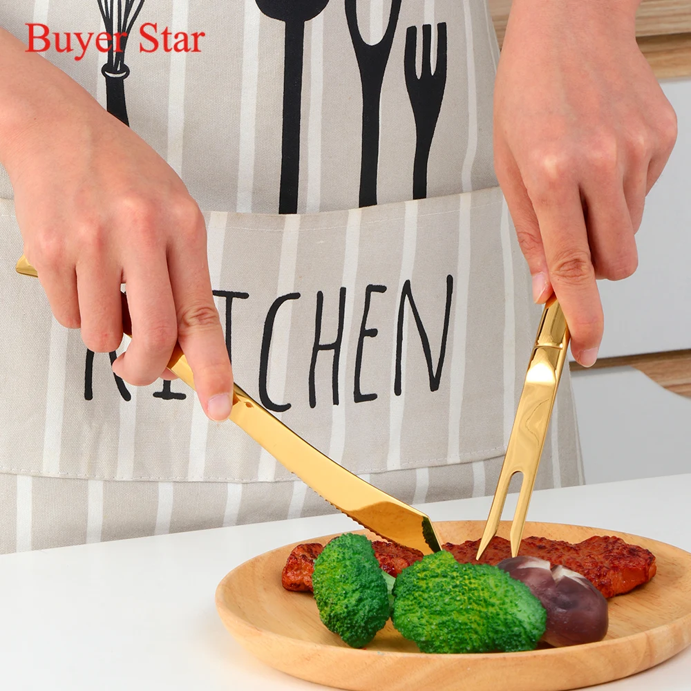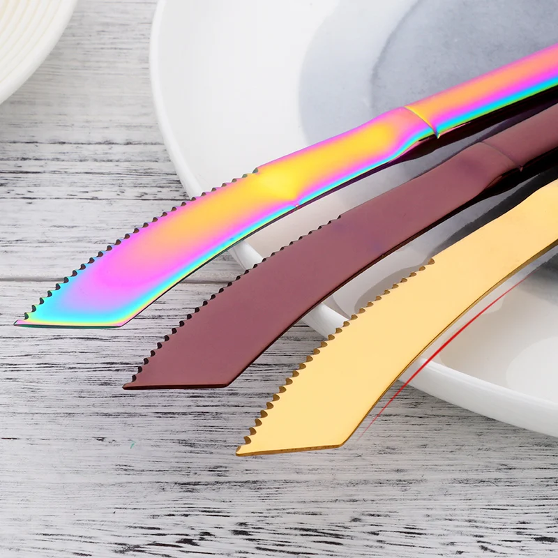 28 шт Высокое качество нержавеющая сталь золотой нож для стейка острые радужные ножи вилки Ресторан Черные ножи для стейка в наборе посуды