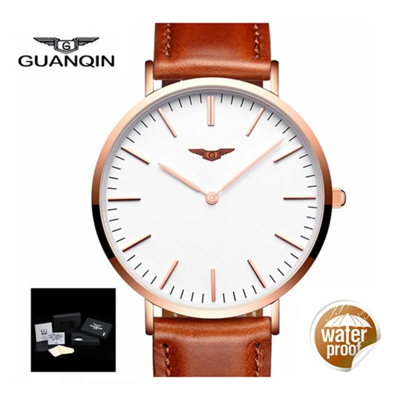 Часы GUANQIN Мужские кварцевые, водонепроницаемые, с кожаным ремешком