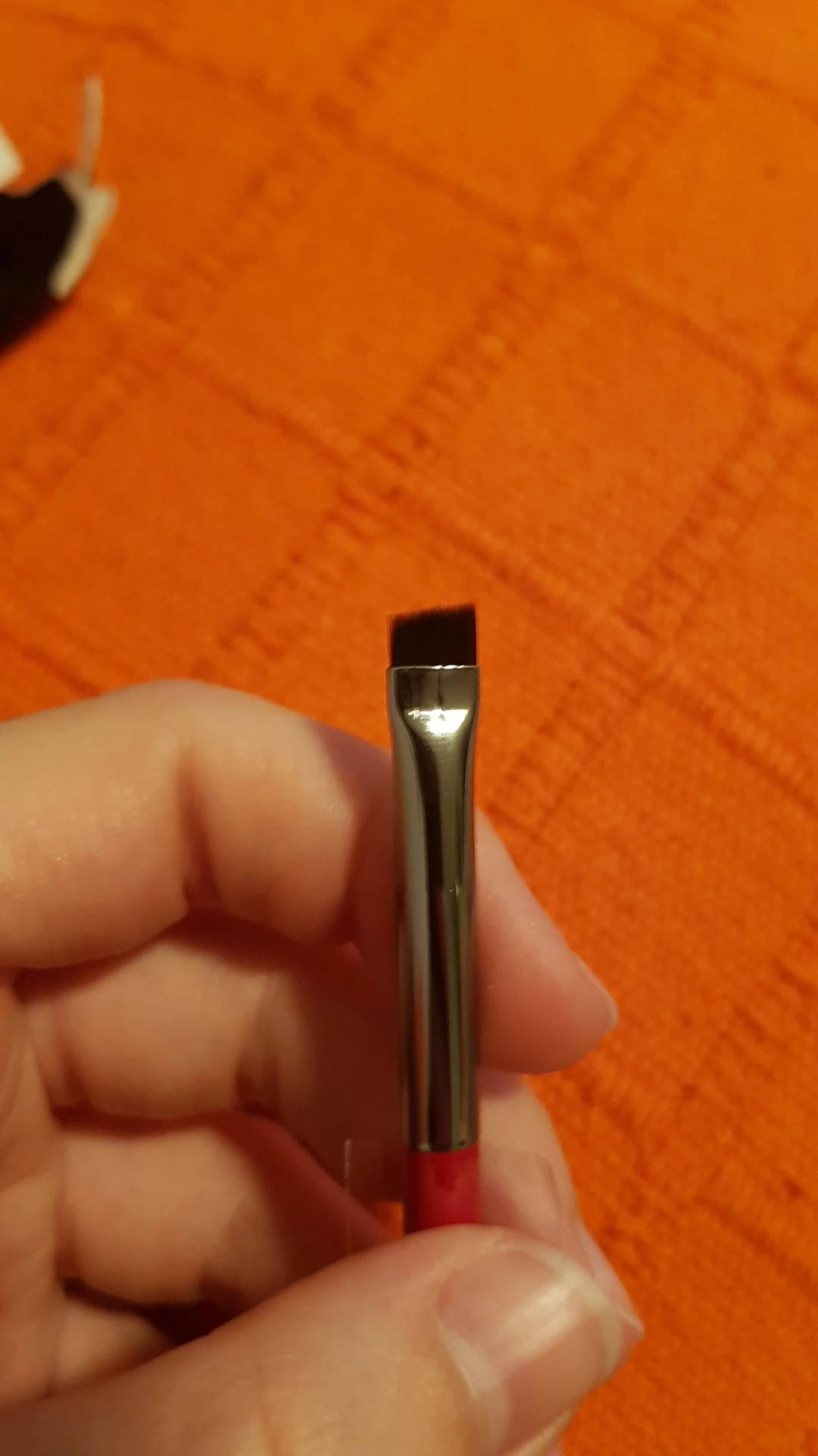Если кому-то важно. У этой кисти. Не супер тонкий край. Для супер тонких стрелок толстовата, для толстых стрелок, и межреснички подойдёт.