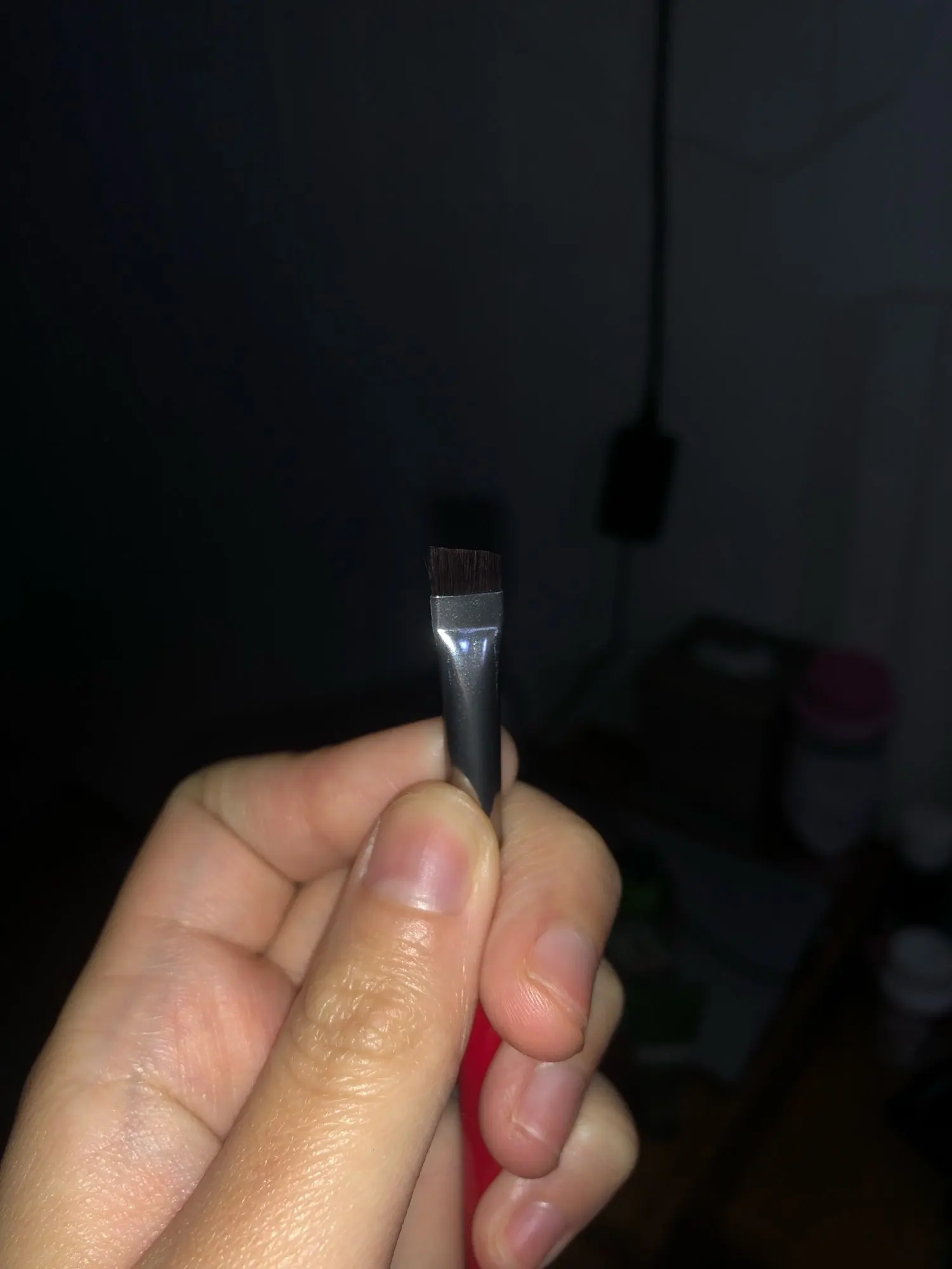 Кисточка замечательная, очень тоненькая, в меру плотная. Я использую для покраски бровей, думаю, подойдёт и для стрелок
