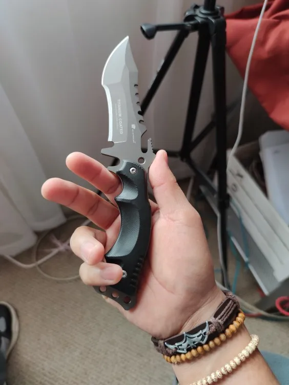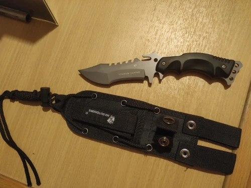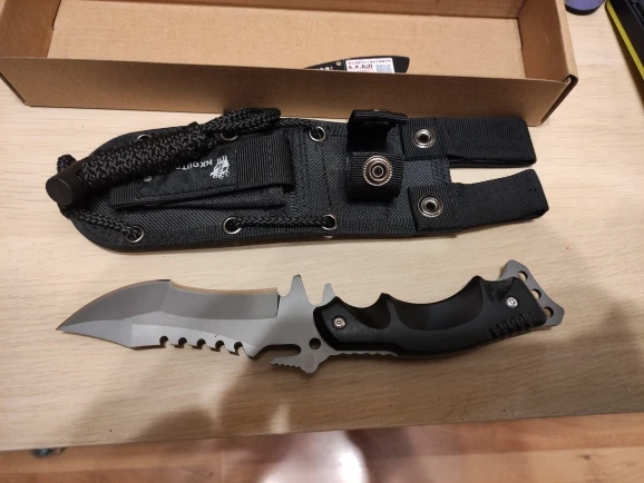 Нож хороший , выглядит отлично , приятно лежит в руке, приехал заточенным , бумагу и жб банки режет хорошо , чехол простой но использовать можно, нож своих денег точно стоит.