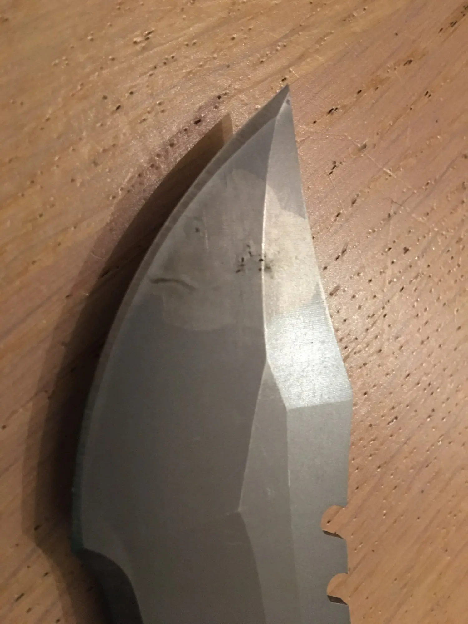 отличный нож, острый как бритва, особенно его верхняя часть лезвия. Пришел очень быстро а даде не ожидал такой скорости доставки. Доволен всем!!!