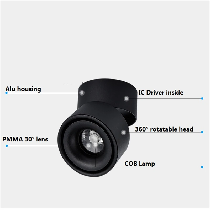 Светодиодный потолочный Точечный светильник с регулируемой яркостью на входе 85-265Vac, Складной поворотный фон для коридора, настенная шайба
