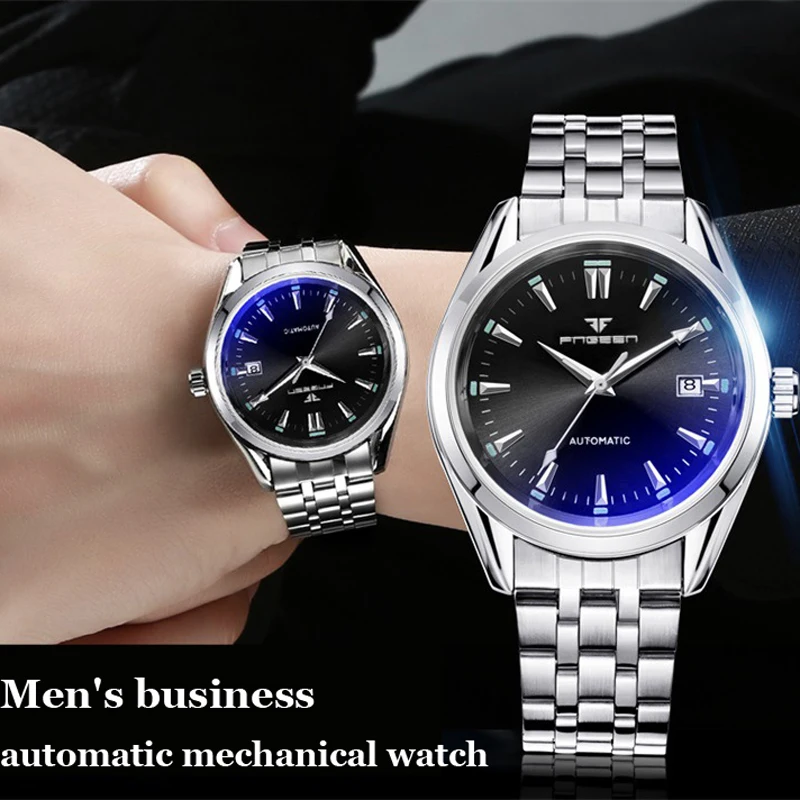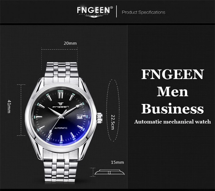 Часы наручные FNGEEN мужские с автоподзаводом, водонепроницаемые автоматические механические, с турбийоном, с датой