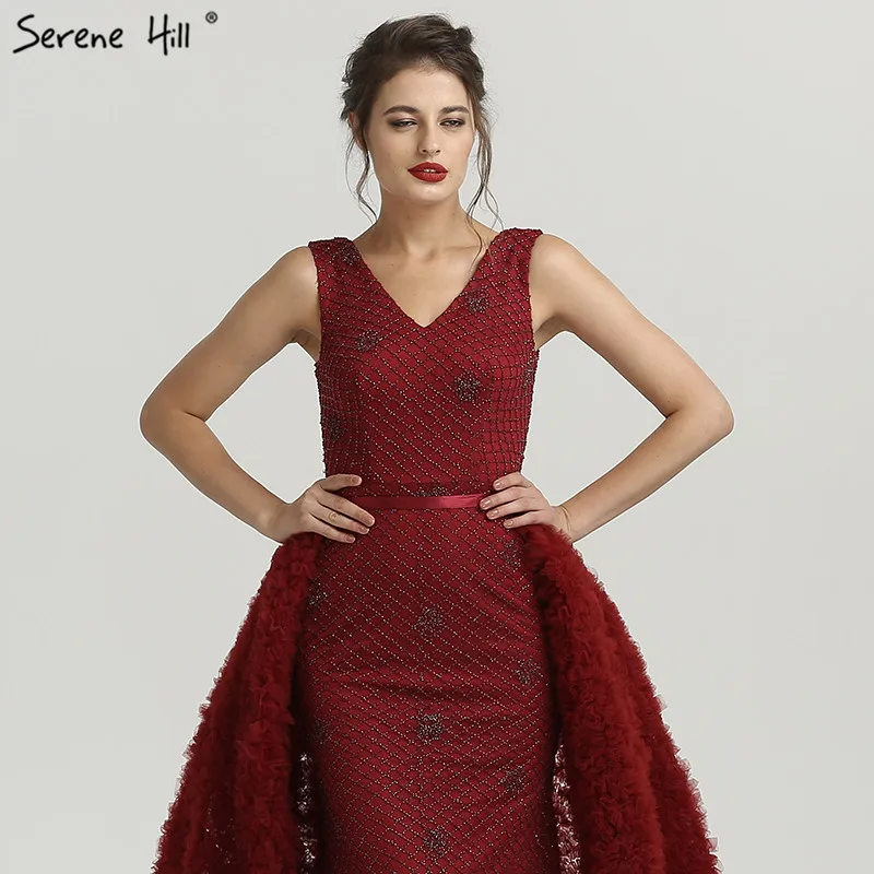 Сексуальные бордовые вечерние платья с v-образным вырезом и пайетками 2020, специальный дизайн со шлейфом, Дубай, платье для выпускного вечера, вечерние платья, BLA6456