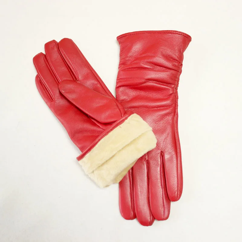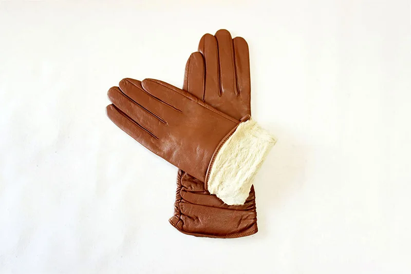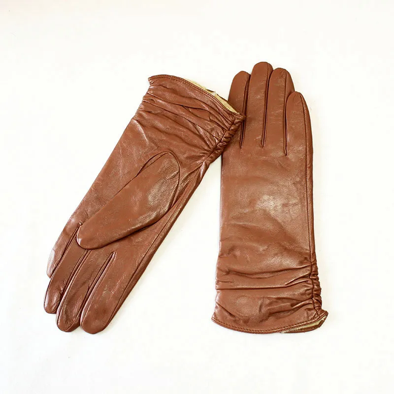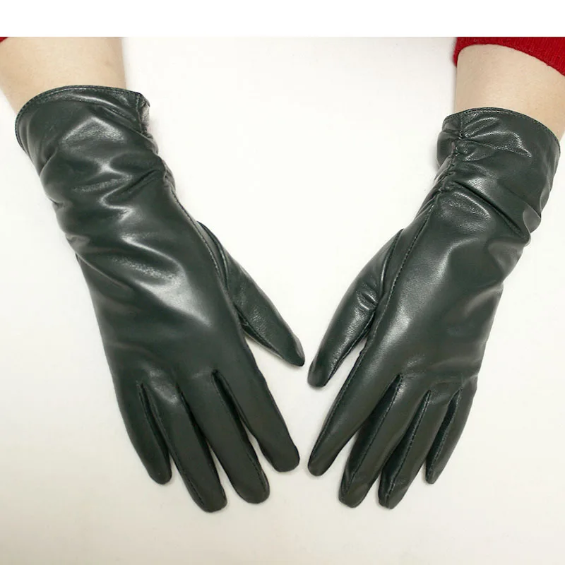 Перчатки женские из овечьей кожи, классические, эластичные, тонкие, с флисовой подкладкой, Осень-зима