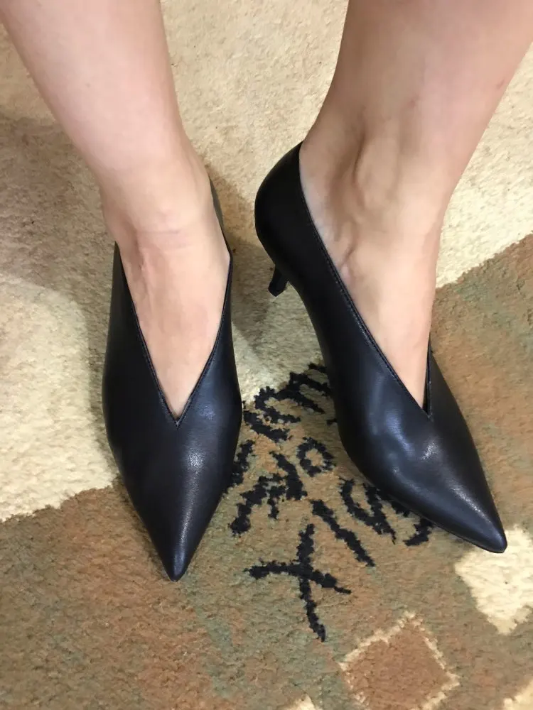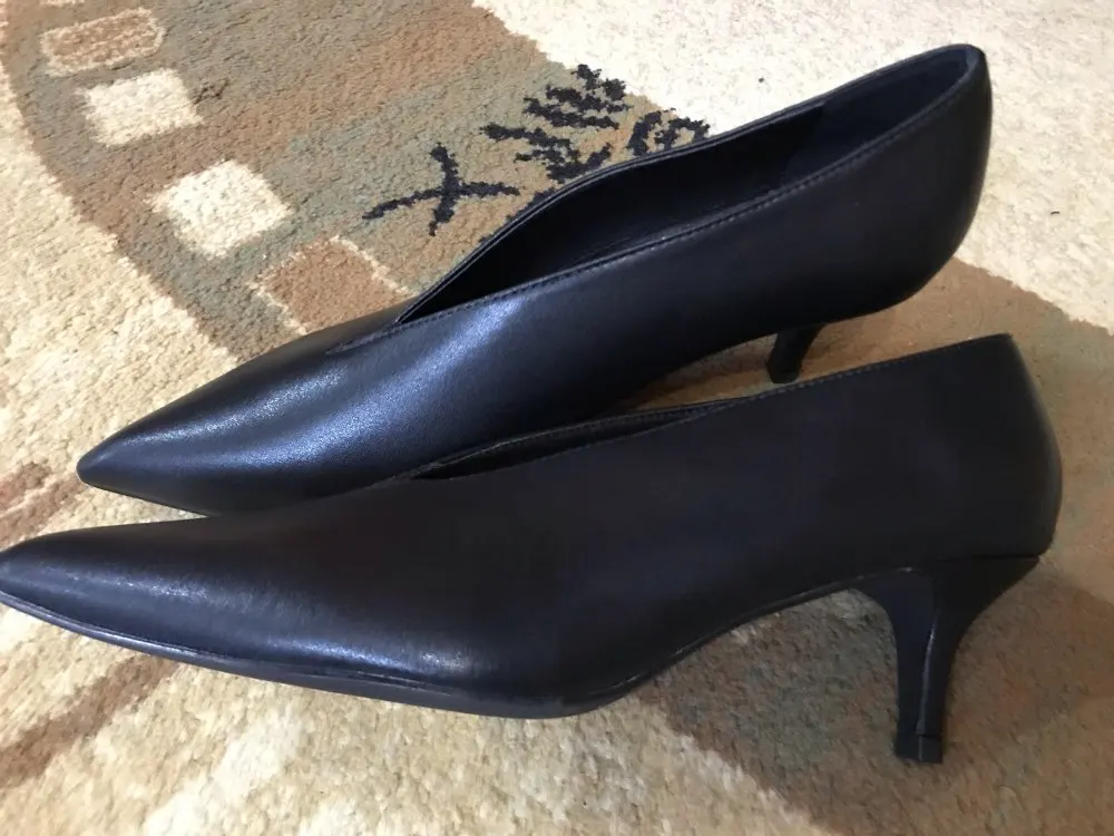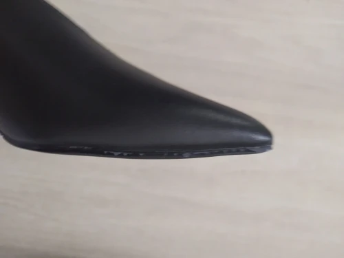 Сделаны не очень качественно: косяки на каблуке, ободрана подошва и следы клея. В целом на узкую и маленькую ногу могут смотреться красиво. На среднюю стопу 24,5 см с плоскостопием размер даже с запасом 39ый оказался маловат. Сбоку смотрятся некрасиво: сильно увеличивают ногу, как лыжи. В общем, модель не для всех, хоть и трэндовая. Кожа на пятке грубовата - думаю, натирала бы. Открыла спор по бесплатному возврату. Долго обрабатывали, но все же деньги вернули. Продавец не отвечал.