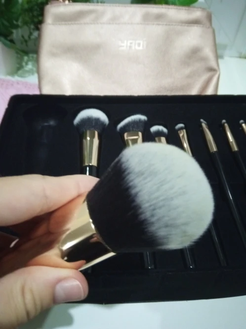 Хорошо упакованы, и кисти, кажется, в порядке, но, как рекомендуется в описании продукта, я включил сообщение в заказ продавцу с запросом о черном мешке, но получил розовый. Моя жена была совсем не довольна цветом.
