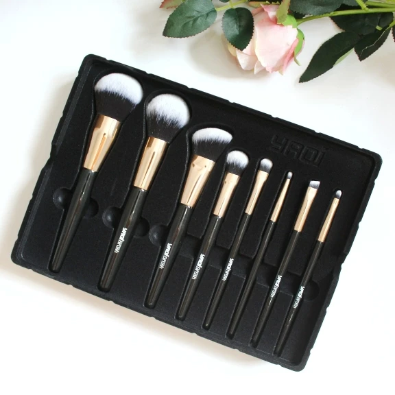 Упаковано в картонную коробку,трек номер посылки отслеживаться полностью .Кисти хорошего качества ,можно в подарок краснеть не придется .Отличное качество ,такие ещё поискать в России нужно цена /качество .Yaqi спасибо ,супер магазин ,супер продавец.