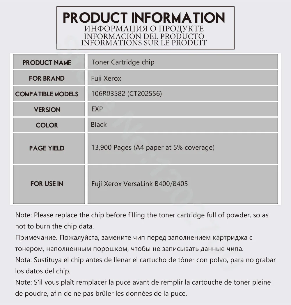 Чип для картриджа с тонером 106R03580, 5 шт., для Xerox VersaLink B...