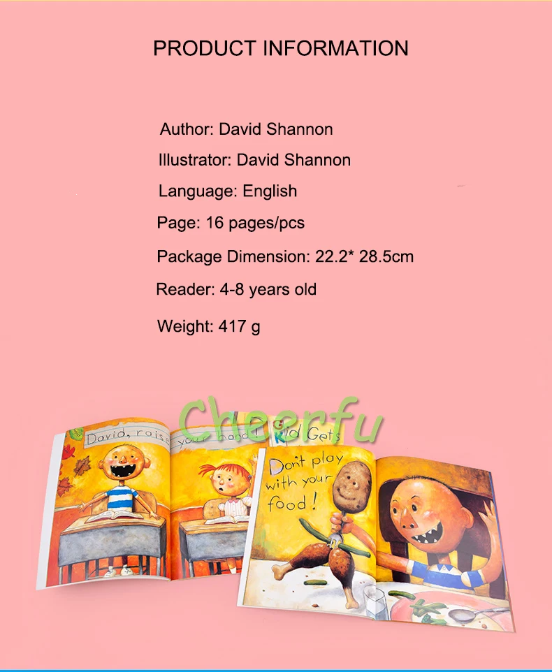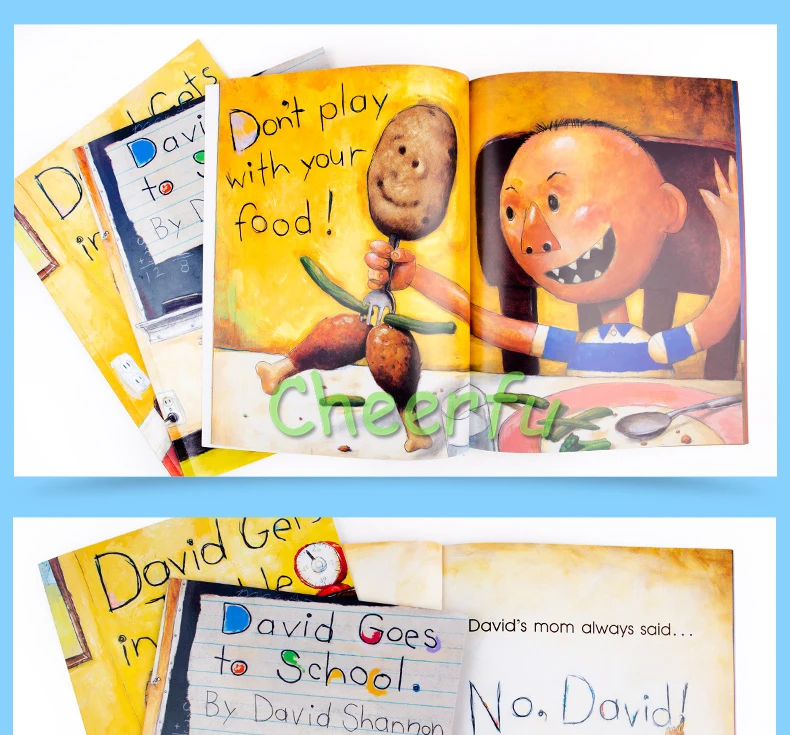 Дэвид Шеннон, 6 стилей, без Дэвида, Дэвид сталкивается, Дэвид идет в школу, познавательные английские книги с картинками для детей