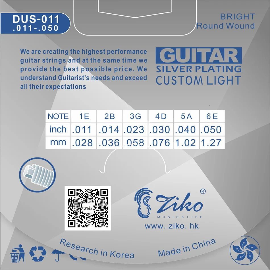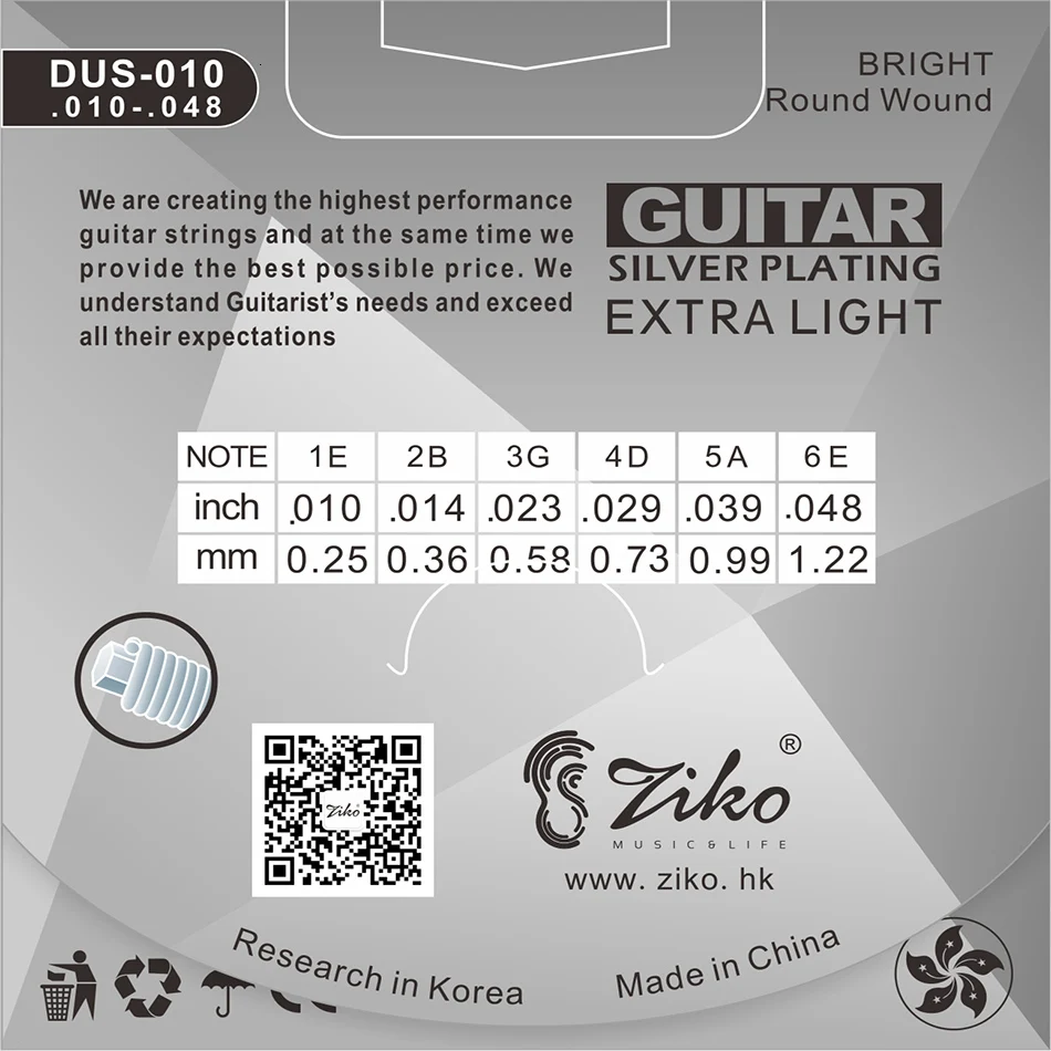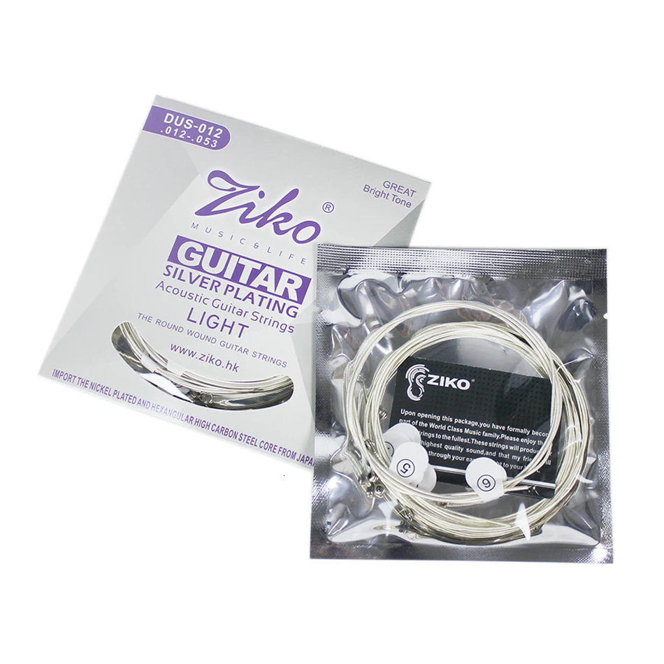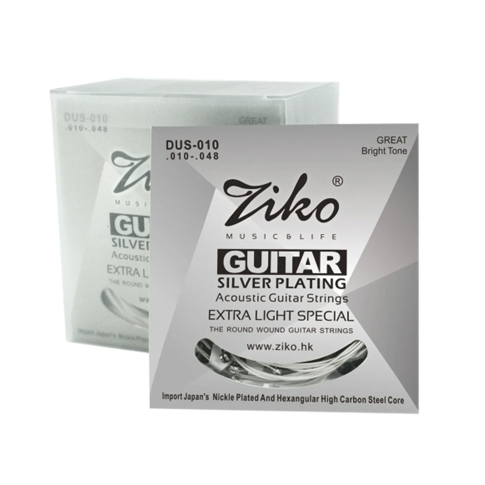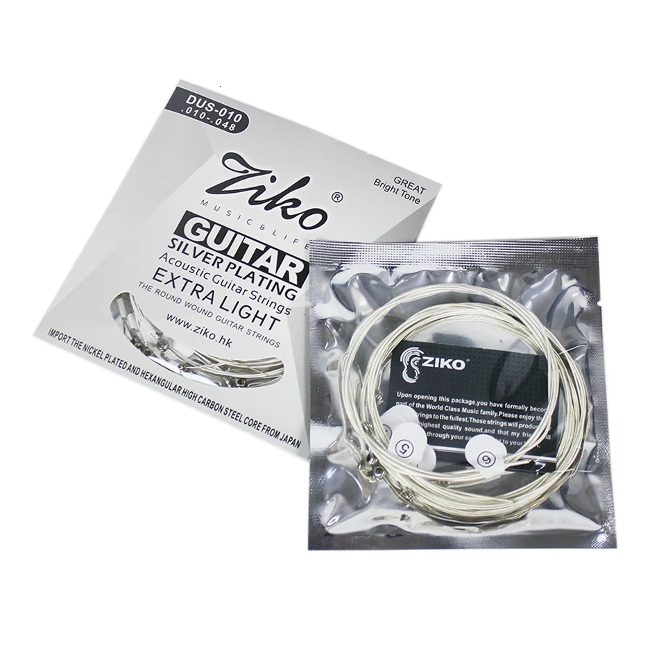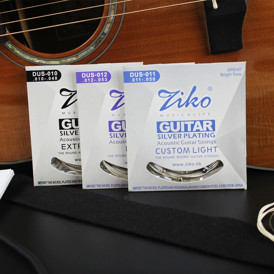Струны для акустической гитары ZIKO серии DUS 010-048 011-052 012-053 дюймов, шестигранные, с сердечником из углеродистой стали, с серебряной обмоткой, купите 3, получите 1