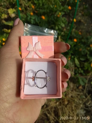 Получила через 22 дня после оплаты в объеденённой с другими продавцами посылке.Почта России держала посылку на сортировке 10 дней.Давно мечтала о перстне с чёрным агатом, но в магазинах подходящего не нашла. А оказалось что "Китай нам в помощь"– можно собрать перстень самой.Заказала эту оправу и у другого продавца агаты 13*18.Клеем и ипоксидкой не пользовалась,а просто прижала через мягкую ткань "усики" и агат держится как влитой.Металл у оправы мягкий.Размер примерно с 18-20, у меня размер 17,5 и мне приходится сильно сжимать ободок.Ещё я поняла что для крупных камней надо заказывать оправу пошире, иначе под тяжестью камня кольцо крутиться на пальце.Короче, я довольна как слон.
