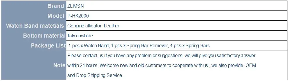 1. Продаваемый товар одинРемешок под крокодила на заказ, Не включает часы и раскладывающуюся застежку. 2. Пожалуйста, обратите внимание, что поскольку каждый из наших ремешков полностью ручной работы, они могут незначительно отличаться (Разница в цвете и текстуре, вызванная разными участками крокодиловой кожи, и каждый крокодил уникален, его кожа также отличается). Фотографии реального ремешка, который будет доставлен Вам, могут быть запрошены и отправлены для контроля качества. Пожалуйста, не стесняйтесь обращаться к нам. 3.Каждый ремешок уникаленРучная работа со страстью и заботой. Материалы отбираются из лучших, чтобы гарантировать высокое качество, которое мы пытаемся поддерживать. 4. Так как процесс производства вручную является сложным и занимает много времени, мы переварили заказы медленно.Изготовление нового ремешка займет около 3-7 дней.Как только мы сделаем ваш заказ, мы сразу же отправим посылку. Мы ценим ваше понимание и терпение.