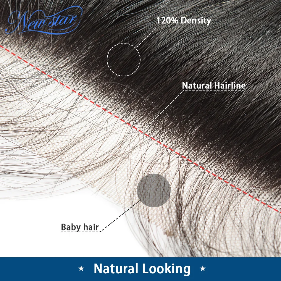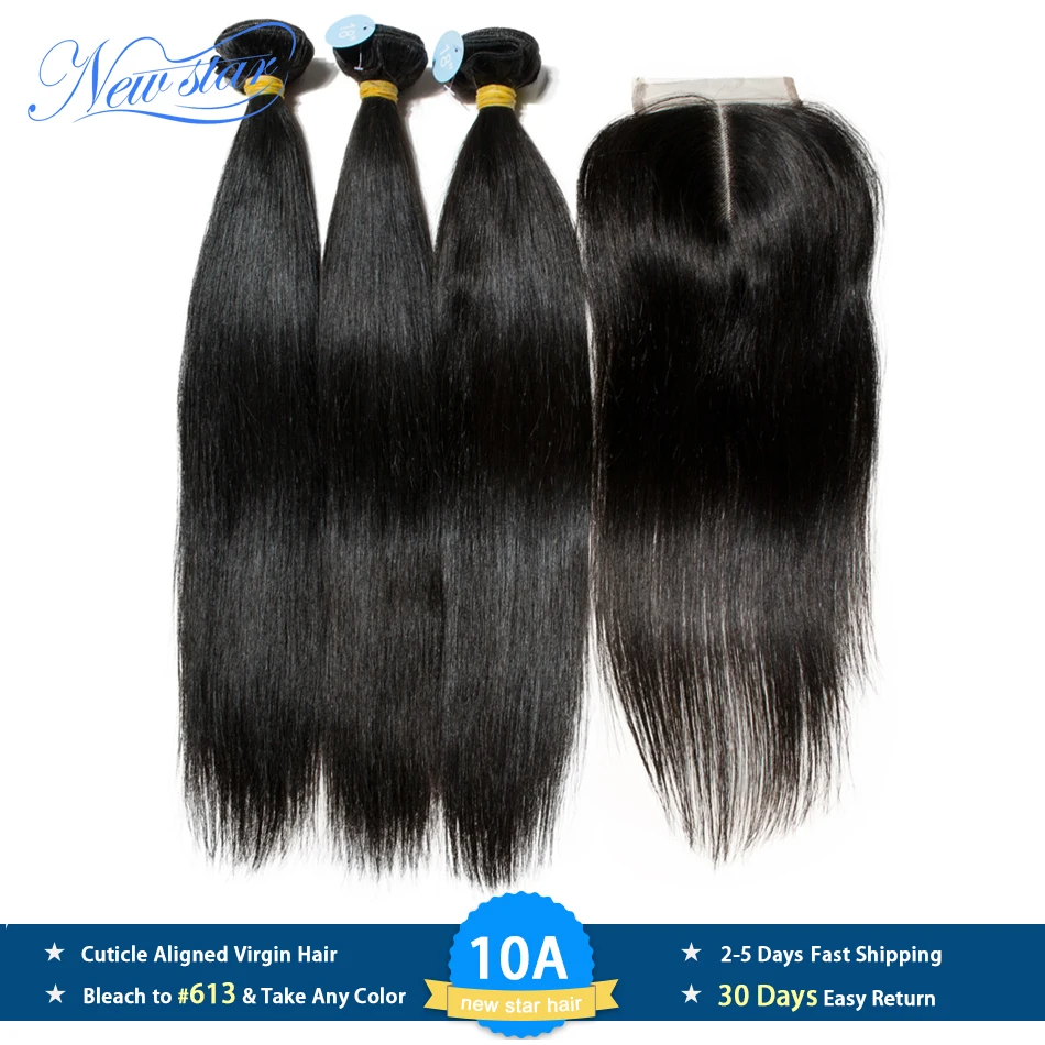 Перуанские прямые натуральные волосы 10 А, 3 пряди с кружевной застежкой, новая звезда, волнистые необработанные волосы, выровненные волосы с кутикулой, пучки и застежка