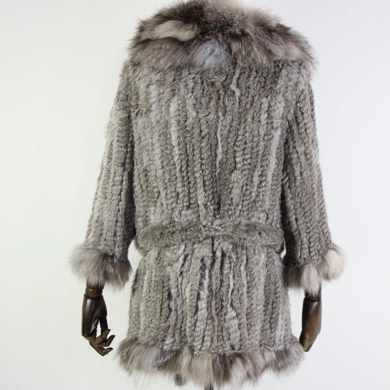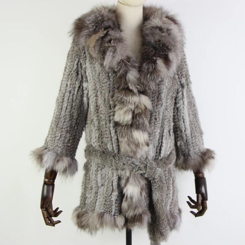 Новое поступление, женская теплая длинная куртка из натурального меха, с воротником из лисьего меха и поясом, большие размеры по индивидуальному заказу