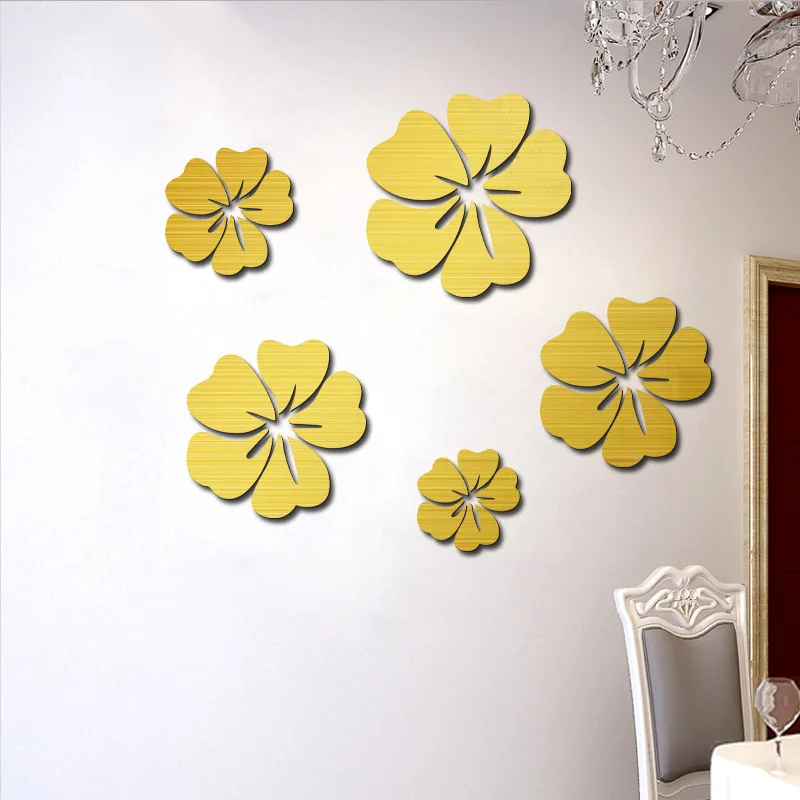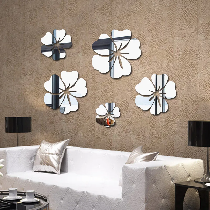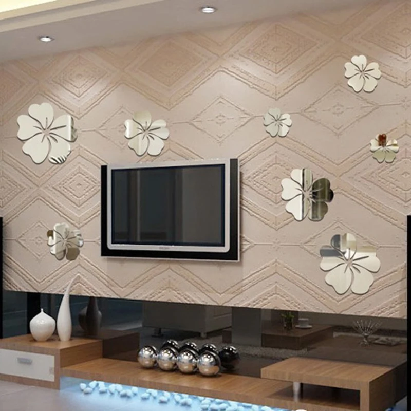 Акриловые зеркальные наклейки на стену, украшение для дома, гостиной, самоклеящиеся, с кристаллами и лепестками гибискуса