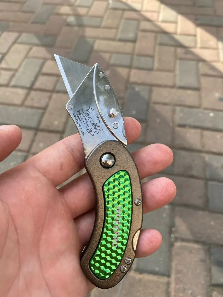 Отличный дизайн. Легко менять лезвия. Механизм разблокировки требует сильного нажатия, не подходит для слабых рук.