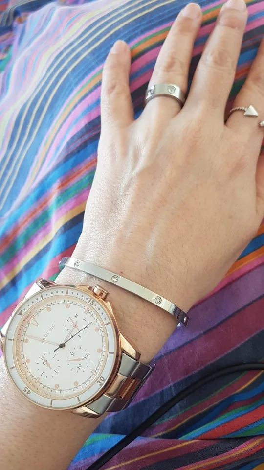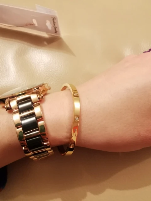 Одела с часиками и никто не понял, что это не золото. Ношу, снимая вечером, отелем бережно. Подобный из золота стоит 25тр,в гонке за сиюминутной модой считаю отличным решением по экономии семейного бюджета.