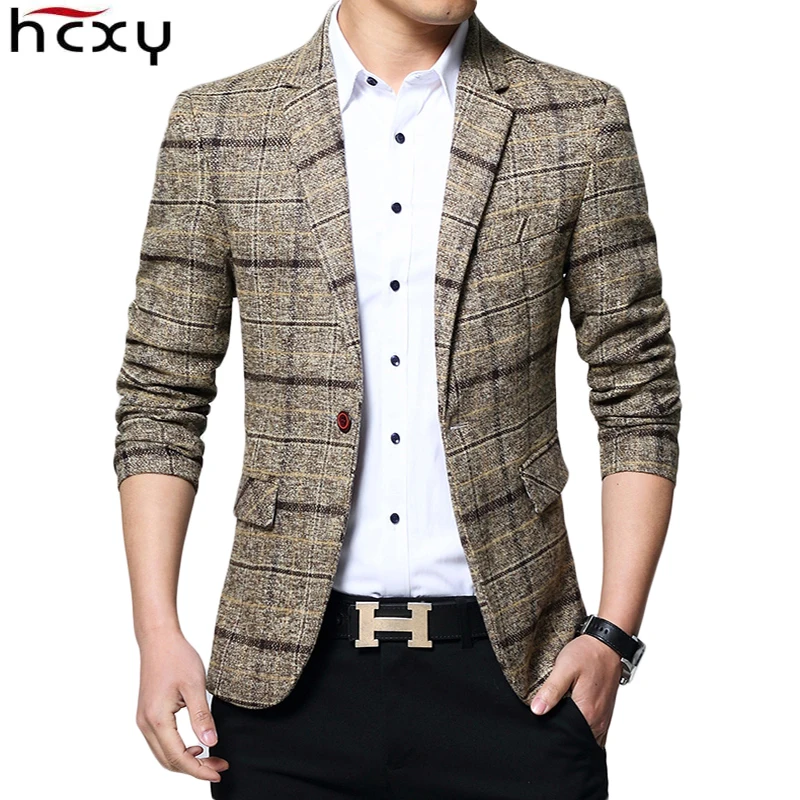 HCXY 2019 Новое поступление брендовая одежда куртка Для Мужчин's Клетчатый костюм куртка Для мужчин Блейзер Мода тонкий мужской Повседневное пиджаки Для мужчин Размеры M-5XL