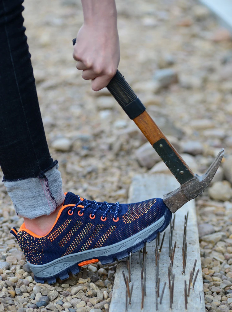 Весенне-летняя Рабочая обувь для мужчин; Модные сетчатые дышащие повседневные ботинки со стальным носком; Мужская безопасная обувь для страхования труда