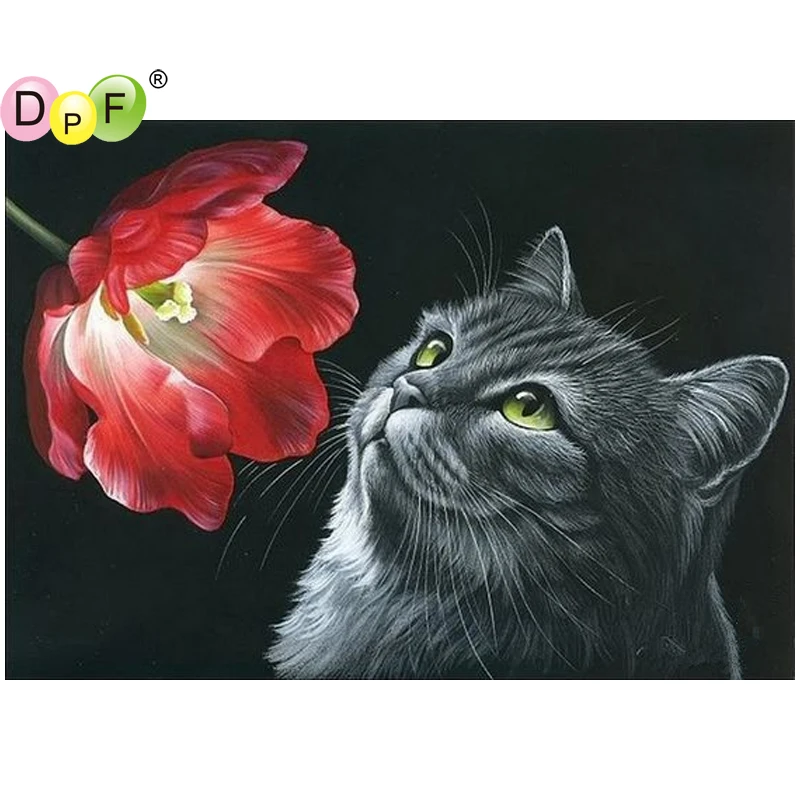 DPF цветы кошка 5D настенная живопись Алмазная вышивка Дом декорати...