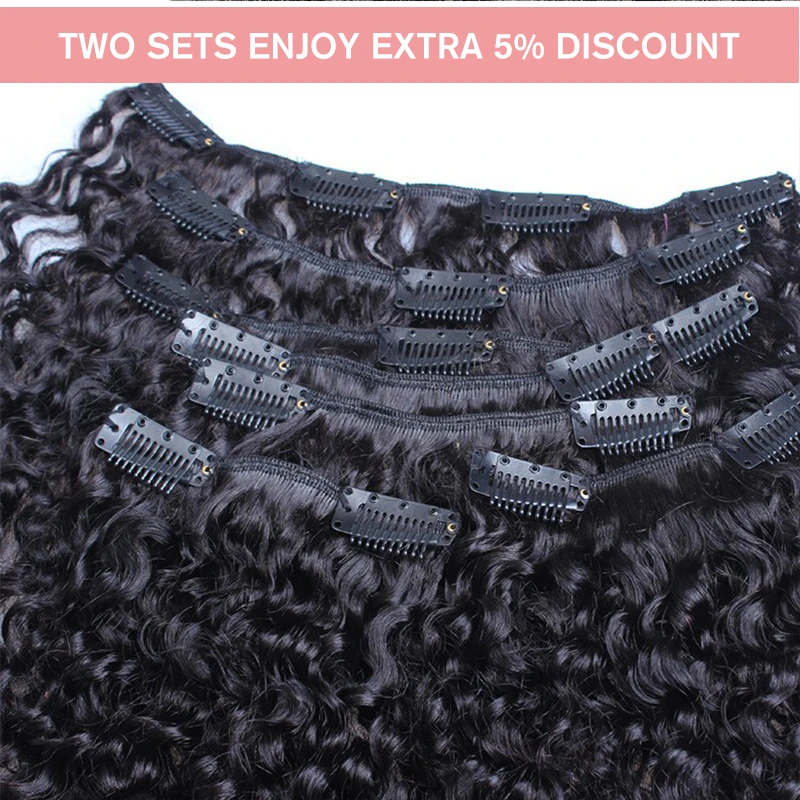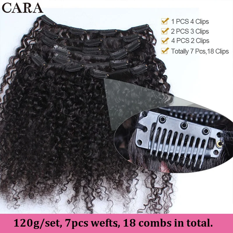 Бразильские афро кудрявые накладные волосы для женщин 3B 3C 100% натуральные черные накладные волосы на всю голову с зажимом Remy 7 шт.компл.